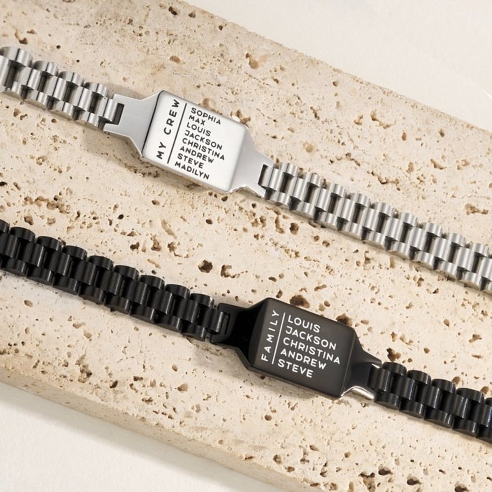 Armbandet är designat med familjen i åtanke och du kan lägga till namn eller födelsedagar för dina familjemedlemmar för att få bäraren att känna värmen av kamratskap och på så sätt skapa en unik minnessak, en personlig gåva som kommer att uppskattas för alltid.