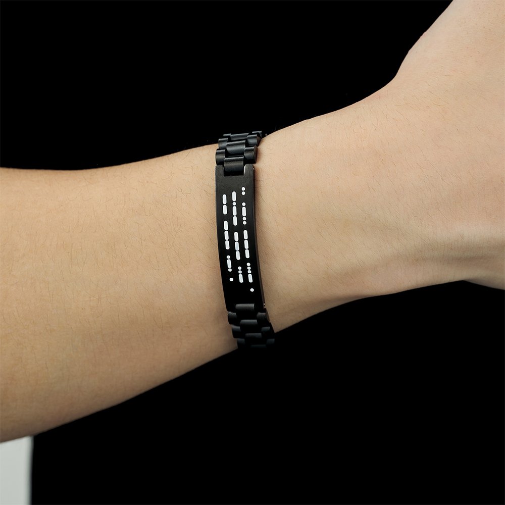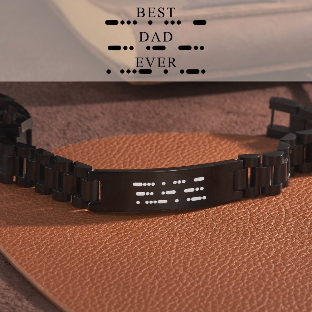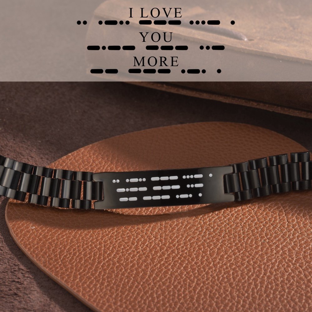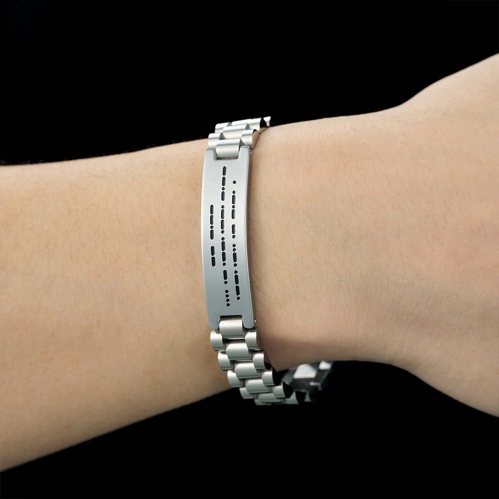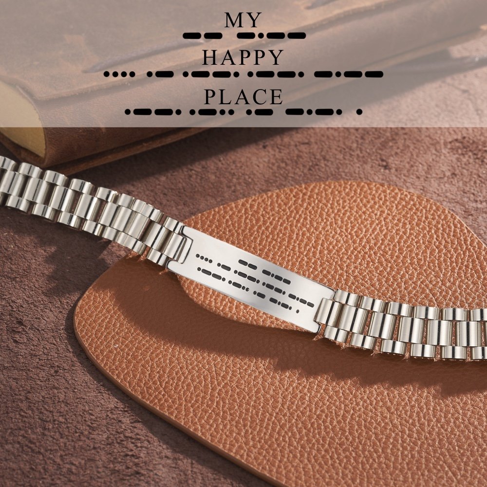 This bracelet features a secret message engraved in Morse code, allowing you to convey a heartwarming message that holds special meaning for him. The secret message adds a touch of mystery and significance, creating a personalized gift that he can cherish forever.