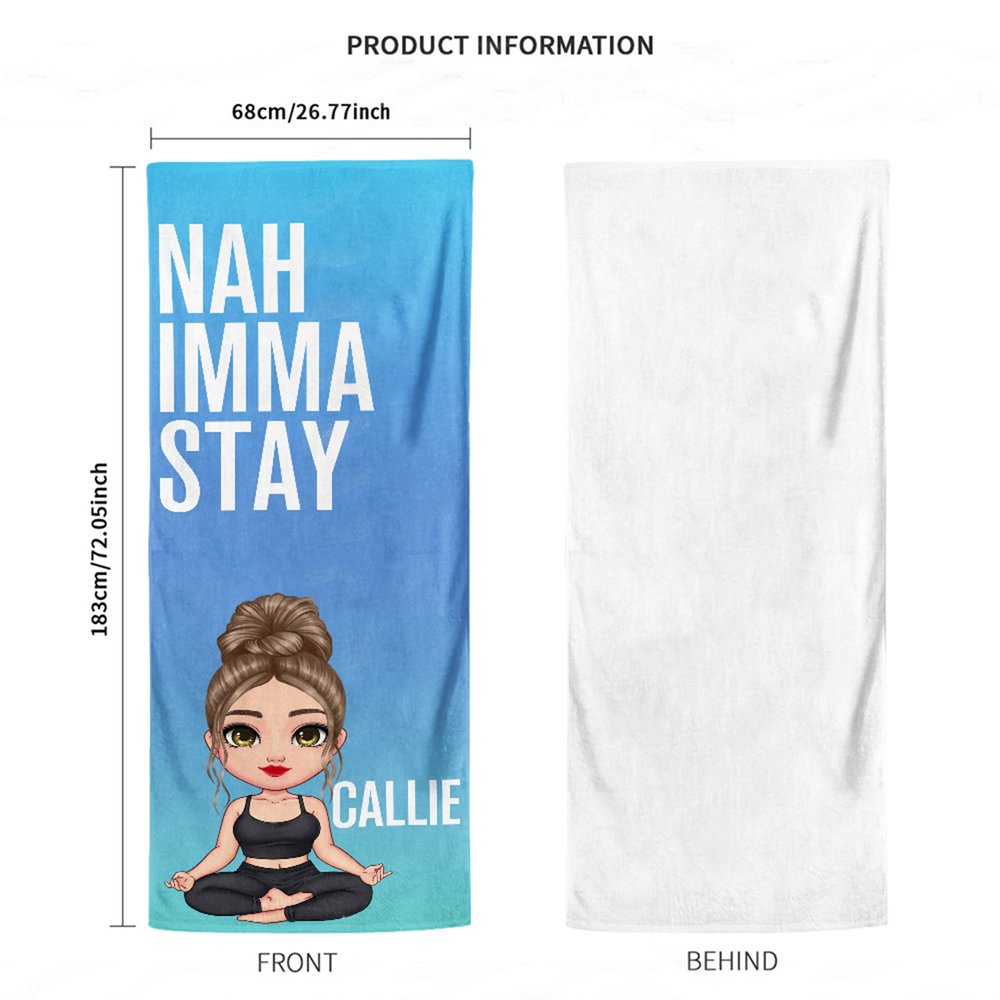 Centrerad kring en tecknad design med en yogaflicka, med anpassningsbara namn och 3-6 rader med personlig text. Den övergripande stilen blandar atletisk energi med en unik personlighet. Den bryter av från monotonin hos traditionella handdukar och lägger till en distinkt känslomässig touch som förvandlar handduken från ett praktiskt föremål till ett statement för yogaentusiaster att uttrycka sin passion.