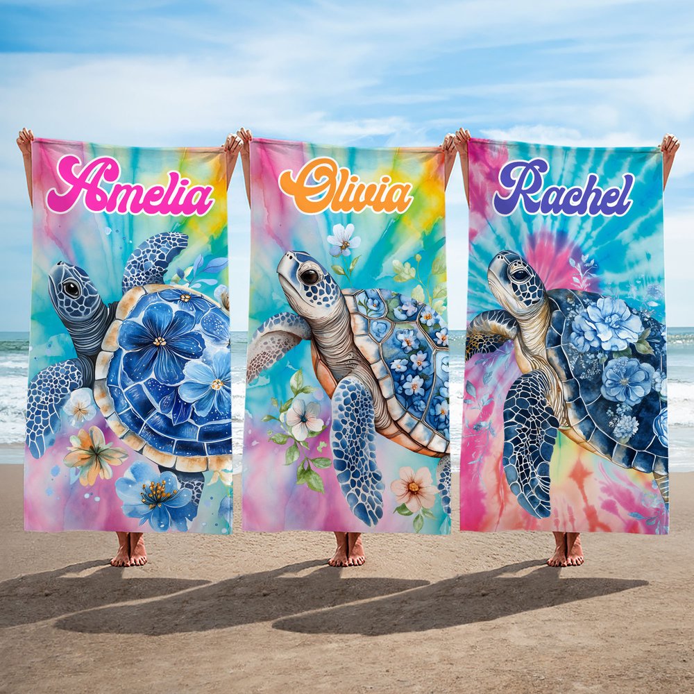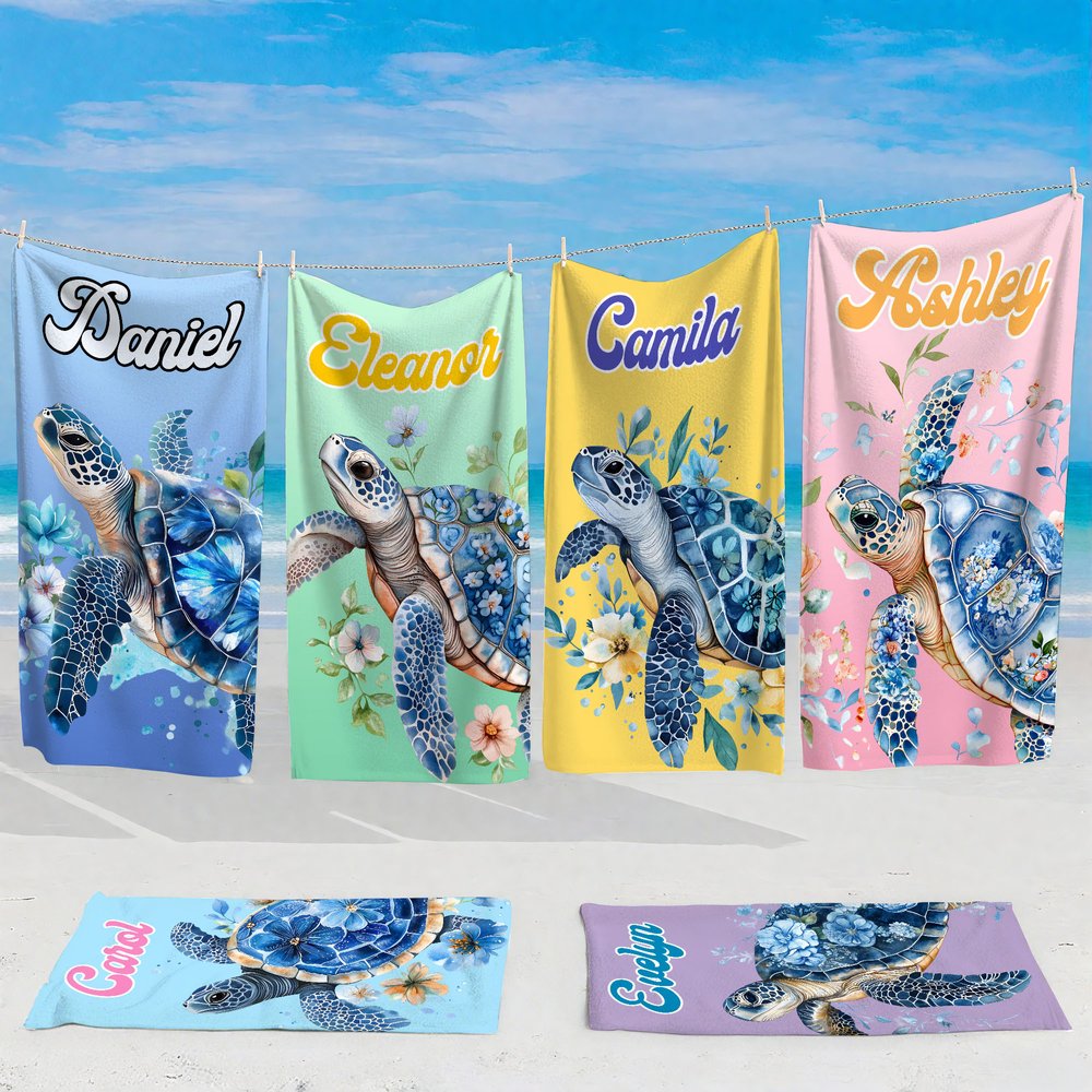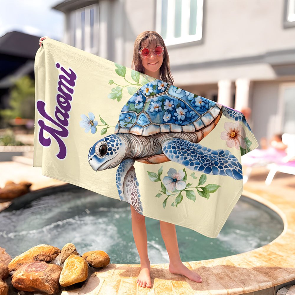 Denna överdimensionerade strandhandduk har ett härligt blommigt sköldpaddsmönster, perfekt för att lägga till en touch av nyckfullhet till dina strandutflykter. Gör den personlig med ett namn för att få en unik accessoar som speglar din stil.