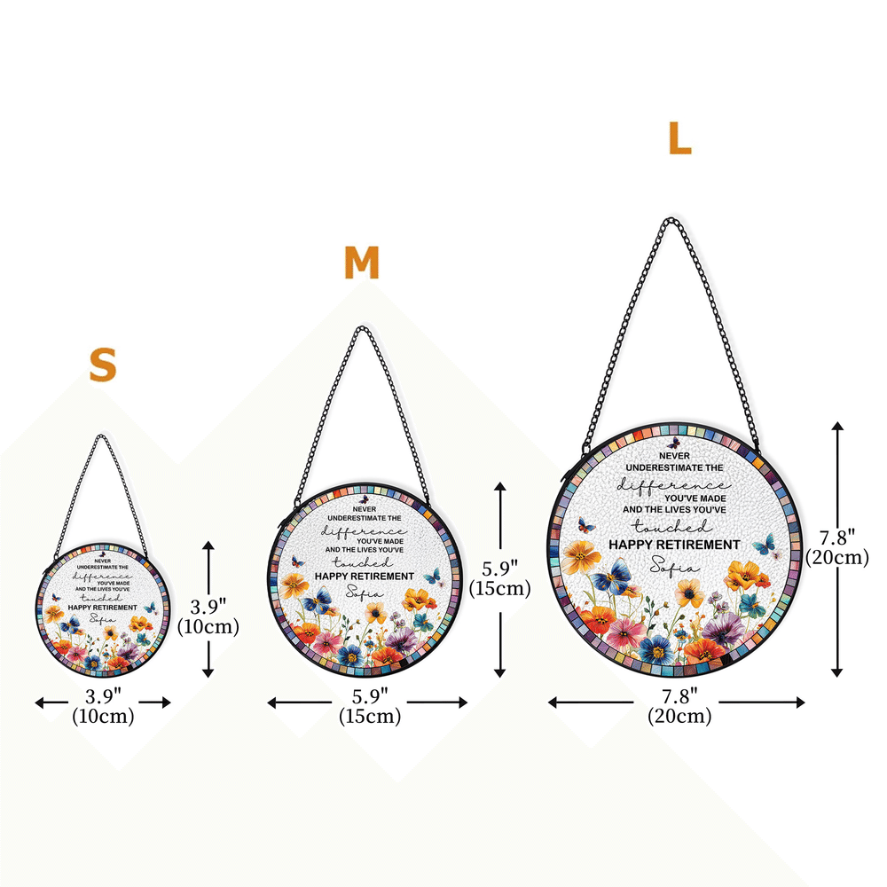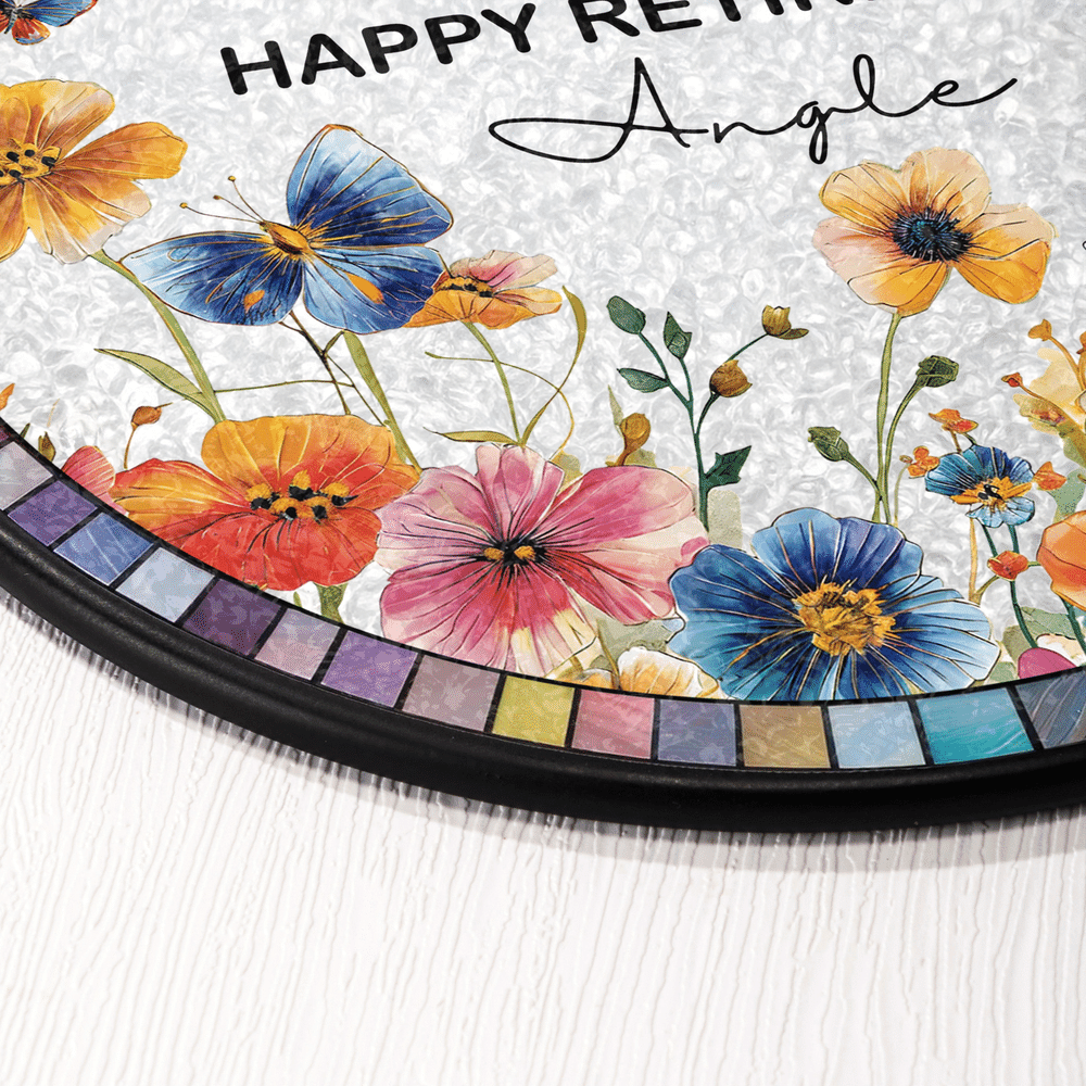 Den är särskilt utformad för pensionärer och passar perfekt för pensionsfester, julklappar, avskedspresenter eller för att skicka varma önskningar till pensionerade mödrar, äldre, kollegor eller nära vänner. Fjärils- och blomstermotivet symboliserar frihet, fritid och fridfulla år framöver. Anpassad text hedrar tidigare bidrag och firar pensionsresan och förvandlar hjärtliga önskningar till en varaktig dekorativ minnessak med en meningsfull ceremoni.