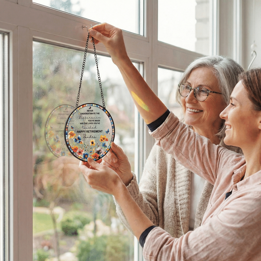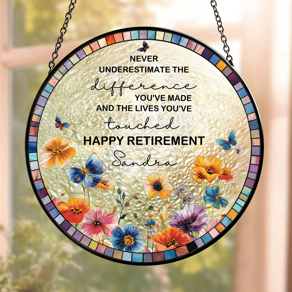 Personlig blomma fjäril trädgård solfångare med namn och text rumsdekoration pensioneringsgåva för mamma pensionär