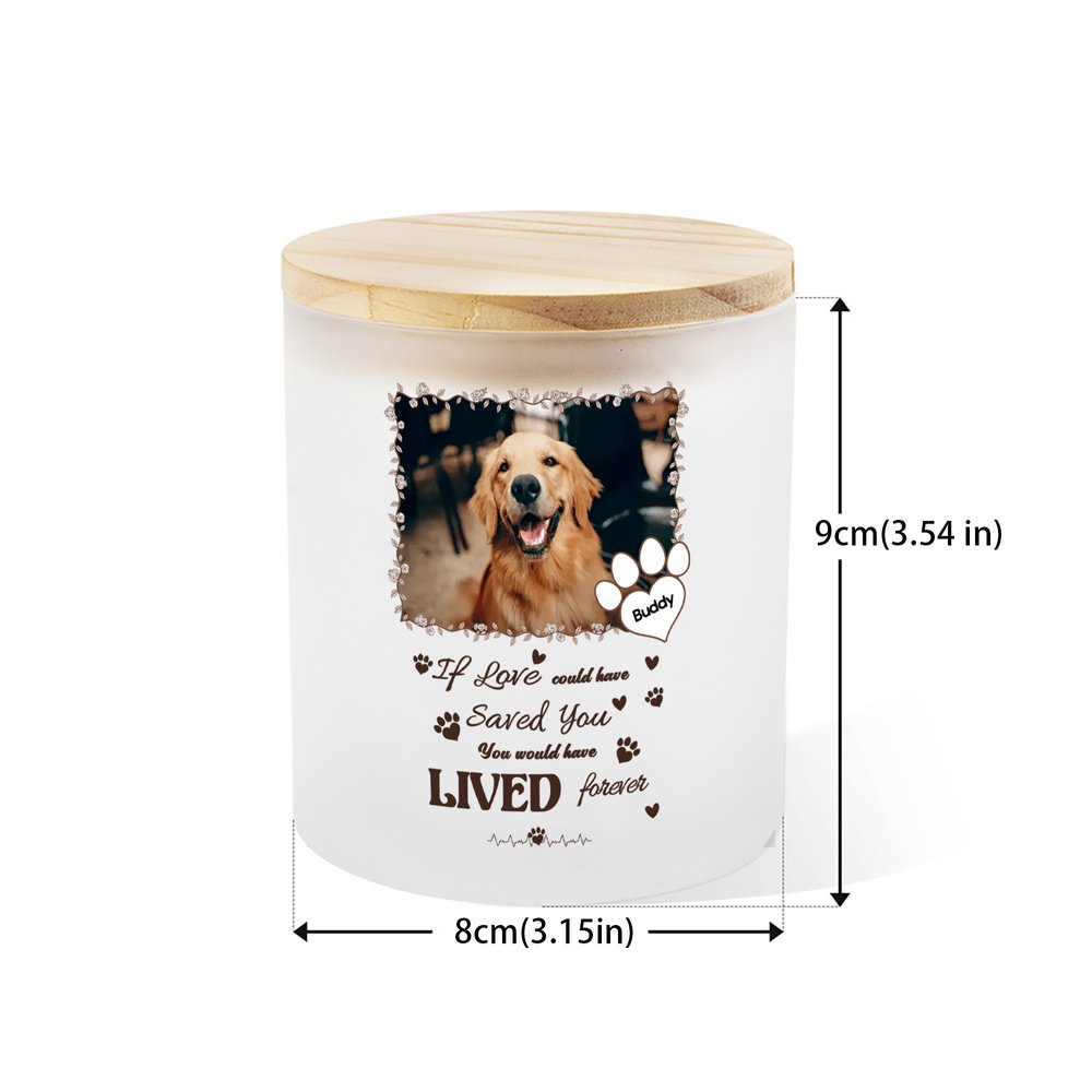 När ljuset är tänt sprids ett mjukt sken genom det frostade glaset och skapar en lugn och varm atmosfär. I det fladdrande ljuset känns det som om du kan skymta ditt husdjurs livliga närvaro samtidigt som du återupplever den glädje och det sällskap som det gav dig. Oavsett om den placeras i ett hörn av ditt hem, delas under familjesammankomster för att minnas eller används i speciella minnesceremonier, erbjuder denna ljusburk komfort och lugn.