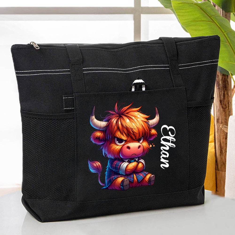 Denna lekfulla tygväska har 24 tecknade mönster med griniga djur, inklusive katter, hundar, highland cows och enhörningar, och blandar på ett perfekt sätt det praktiska med det roliga. Den är ett snyggt val för vardagsbruk i sex livfulla färger. Dessutom kan du göra den personlig genom att lägga till ditt namn, vilket skapar en verkligt exklusiv accessoar.