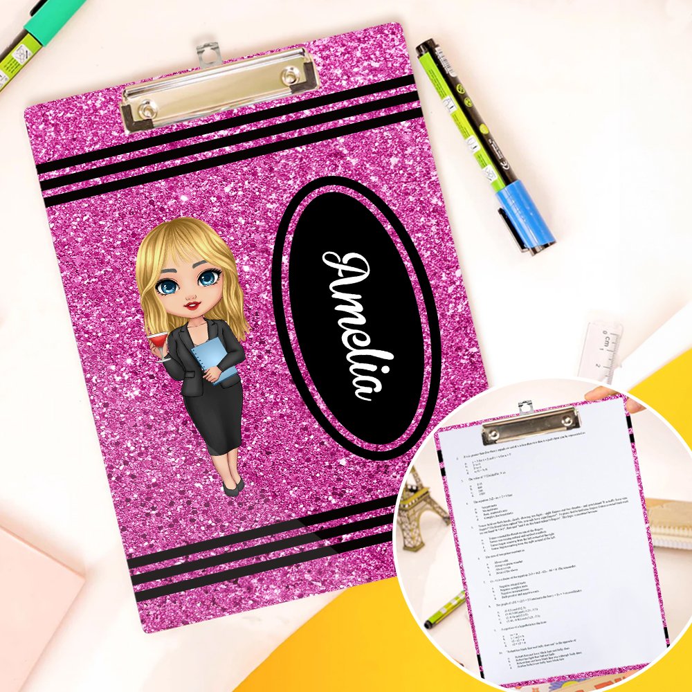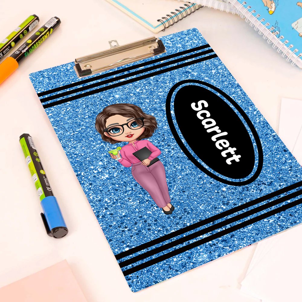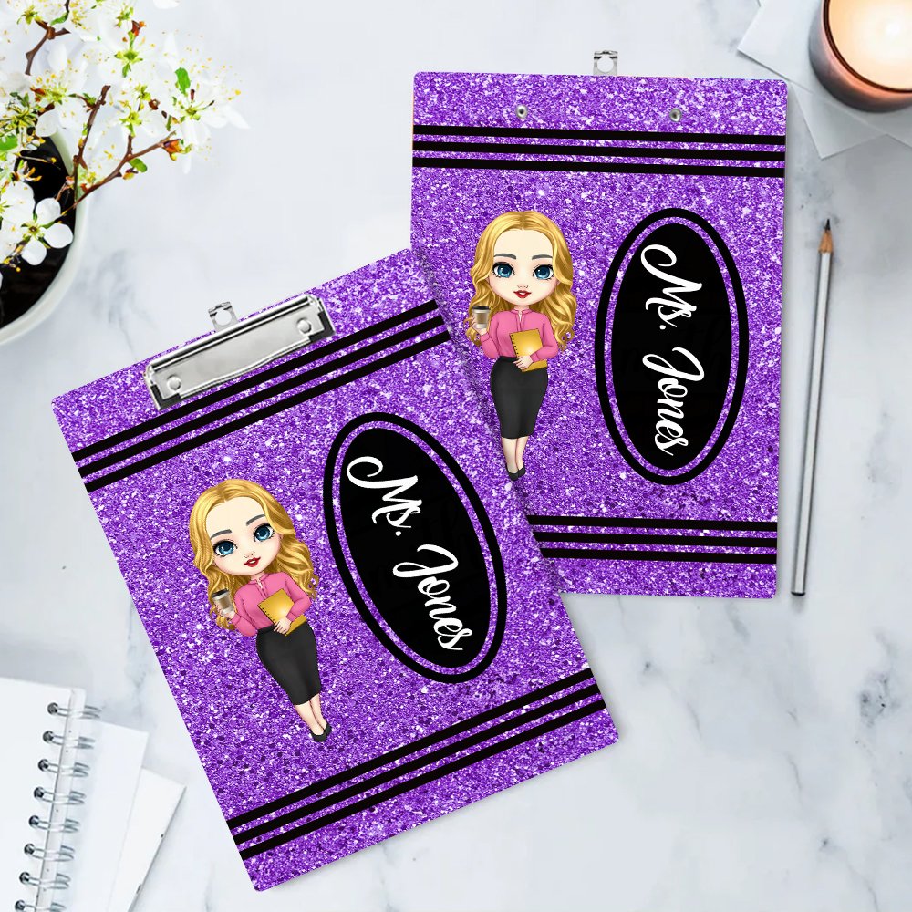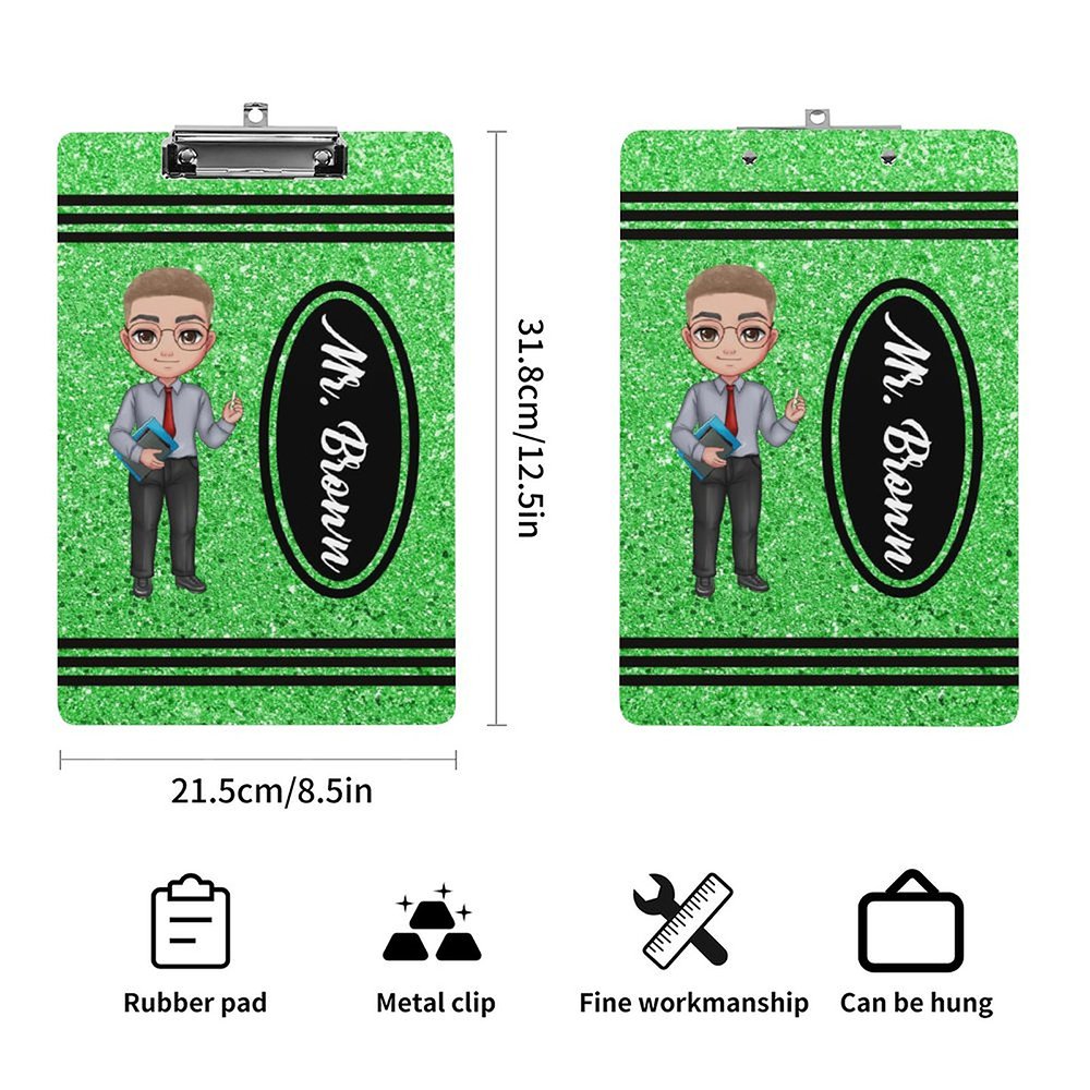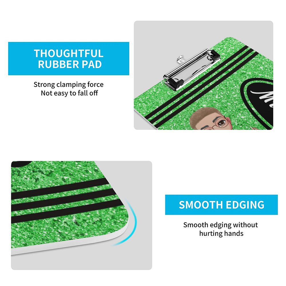 Detta clipboard har en glittrande kritdesign som är full av färg och skoj. Anpassningsbara seriefigurer och faux paljett-effekter ger visuellt tilltal och skoj.