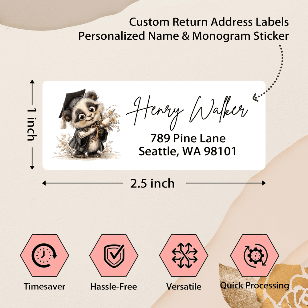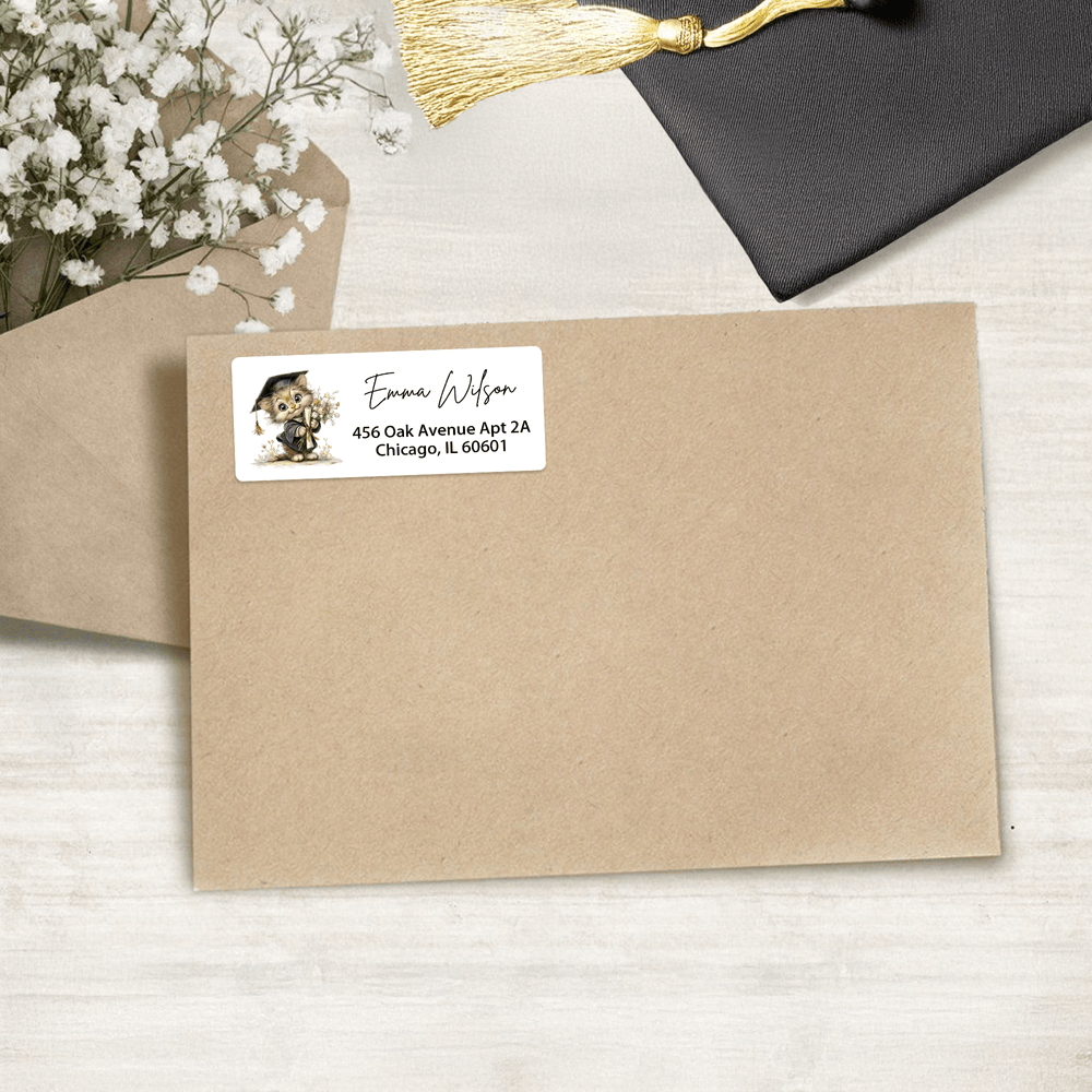 Perfekt för returadresser på examensinbjudningar, tackkort, fotoförsändelser, presentförpackningar och korrespondens med alumner. Layouter med hela ark möjliggör snabb bulkskalning för klass- eller skolbeställningar, medan mindre kvantiteter är lämpliga för individuell anpassning. De fungerar också bra på klippböcker, minneslådor och examensfestfavoriter - strömlinjeformar utskick och höjer presentationen.