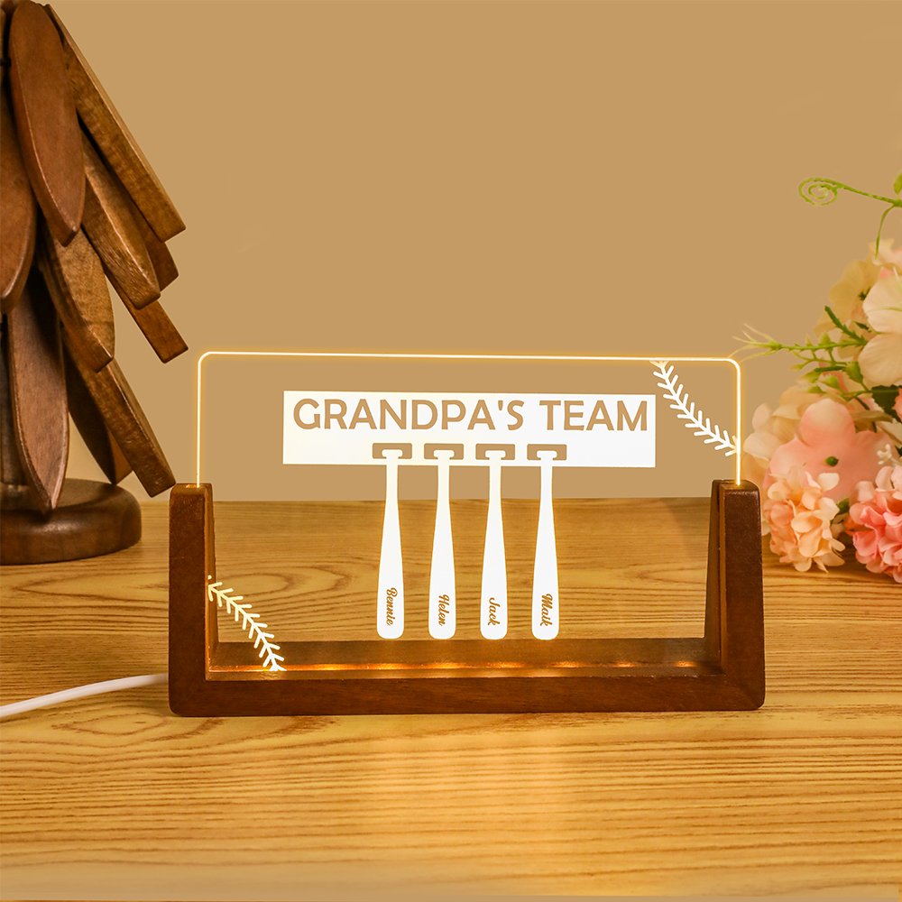 Personlig morfars lag basebollträ LED-nattlampa med 1-7 barns namn och träbas heminredning fars dag födelsedagspresent till morfar coach