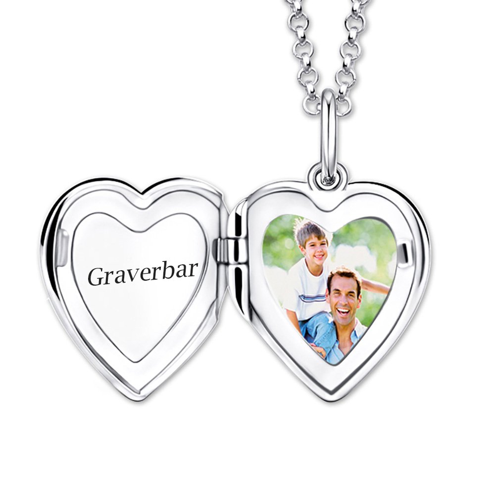 Detta halsband är utsökt och vackert, med en hjärtformad fickur som huvuddesign, som symboliserar evigt skydd. Du kan anpassa dina foton inuti det hjärtformade hänget för att frysa dina vackra stunder, och dina minnen kommer att skyddas för alltid. Lägg till ett uppriktigt meddelande för att göra halsbandet till ett verkligt sentimentalt smycke.