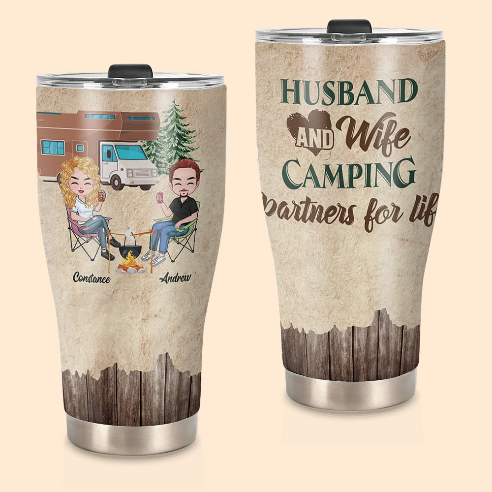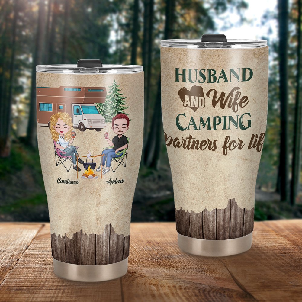 This is a tumbler designed around the theme of couples camping, with the personalized quote and characters, it is attractive for those who like camping or want to stand out from the crowd.