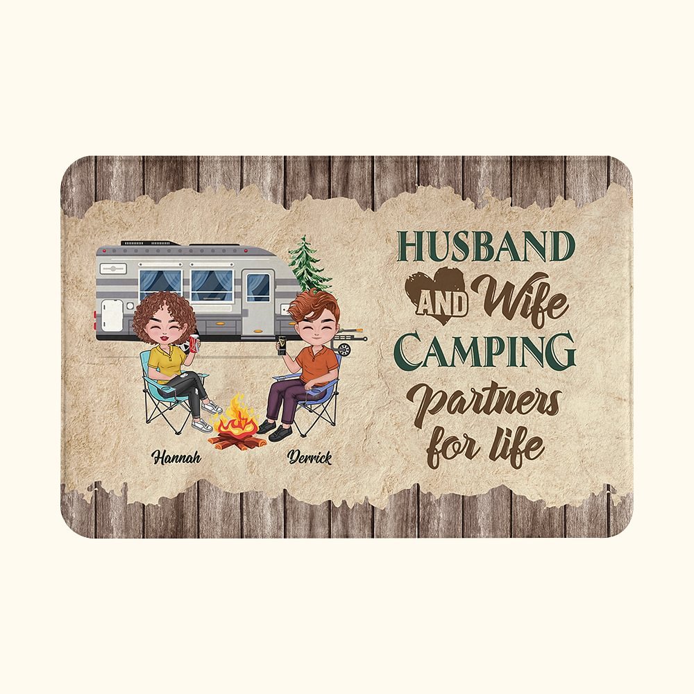 The message "Husband And Wife Camping Partners for Life" is beautifully printed on the doormat, reminding the couple of their everlasting love and the adventures they have shared.