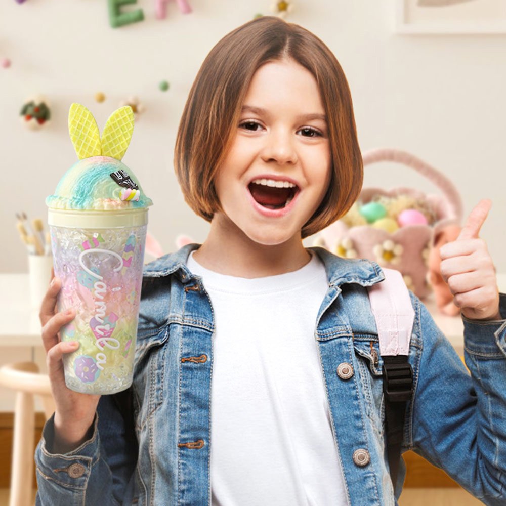 Med en kapacitet på 445 ml (15 oz) är den här vattenflaskan tillräckligt stor för att tillgodose barnets dagliga dryckesbehov. Mer än bara en praktisk vattenflaska, detta bedårande tillbehör ger en touch av sötma och friskhet till alla utrymmen. Det oemotståndliga locket med öron som föreställer en kanin med glass fångar barnens uppmärksamhet och uppmuntrar dem att dricka mer vatten under dagen.