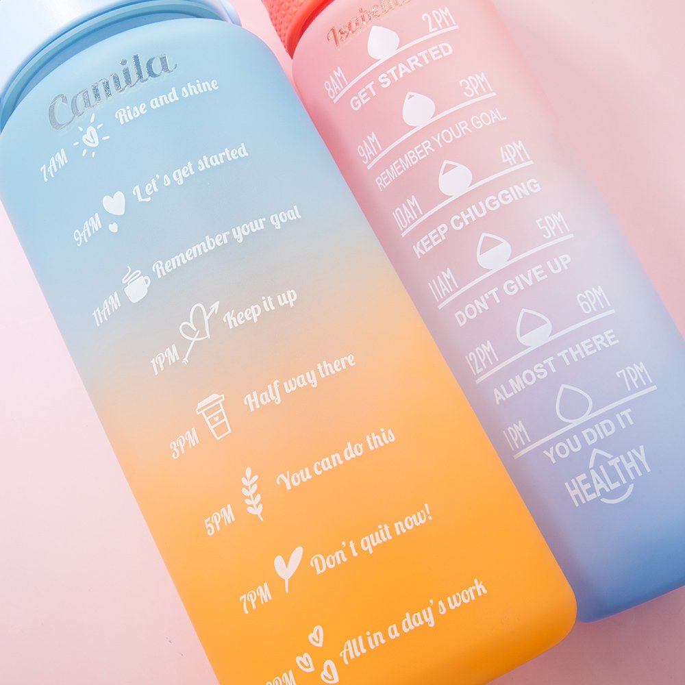 34oz/68oz motiverande vattenflaska med tider att dricka och inspirerande citat, den är perfekt för att mäta ditt dagliga vattenintag och se till att du håller dig hydrerad.