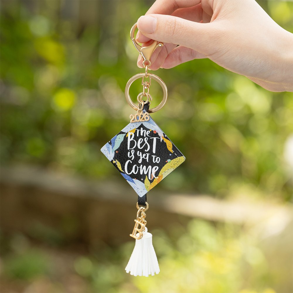 Inspirerad av den klassiska studentmössan representerar denna nyckelring den akademiska resan på ett vackert sätt. Gör läderkepsen personlig med inspirerande text, mottagarens initial och en tofs i samma färg som skolan. Ett praktiskt och personligt sätt att fira deras examen.