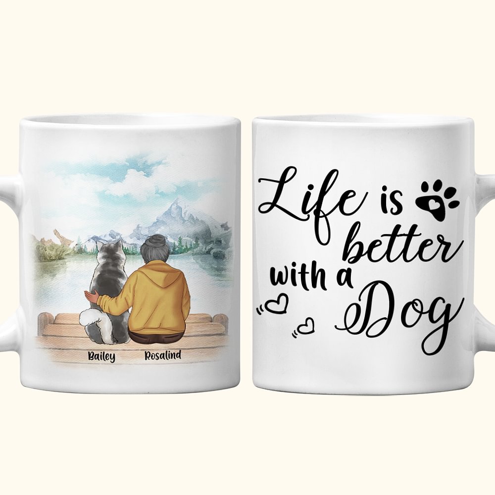 This Phrase “Life is better with a dog/dogs” is printed on our ceramic mug. It expresses the sincere feelings between the owner and pet, the significance of their years of friendship, and the pride of the owner as a dog mom/dad. Whether you give it to family or friends or treat yourself, this gift is ideal for dog lovers.