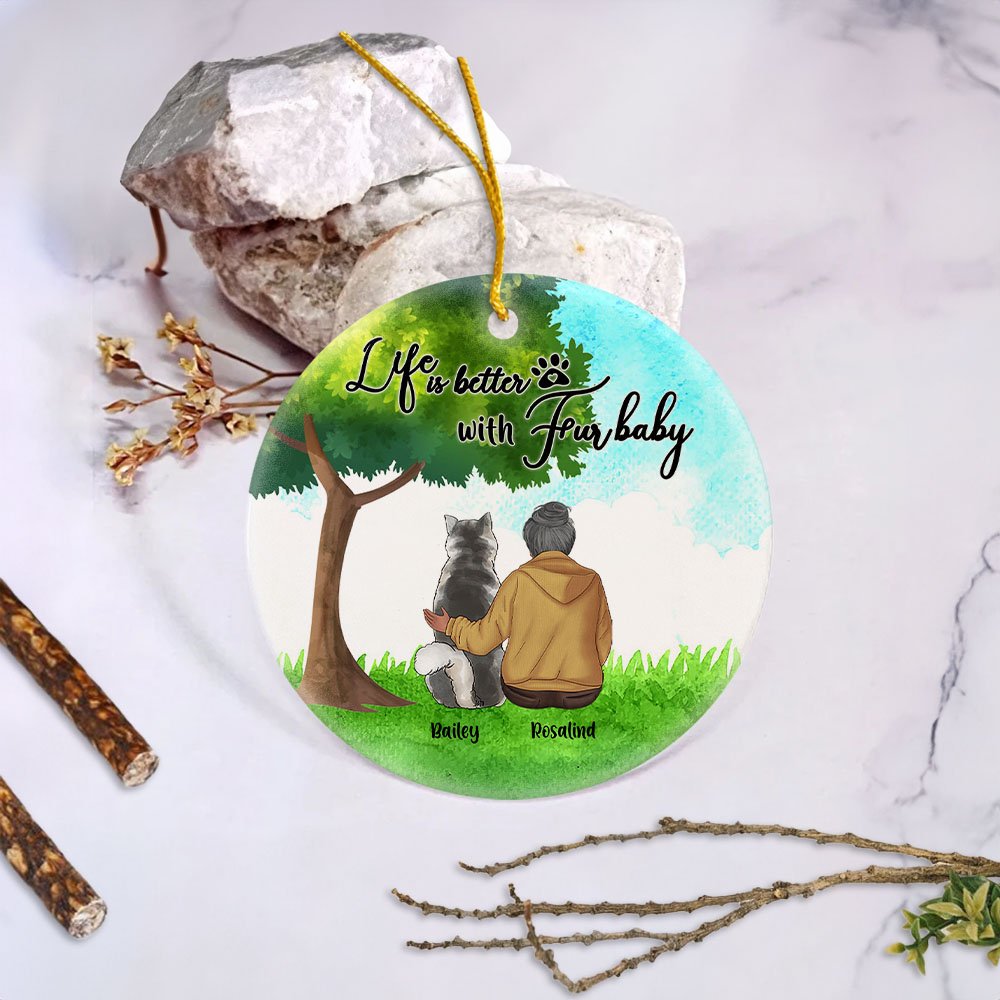 The backdrop of green grass adds a sense of harmony and nature to the decorations. "Life is Better with Fur Baby" shows your love and missing for dogs. The hanging round shape feels gentle, making it stand out from other accessories and really showing your love for your dog.