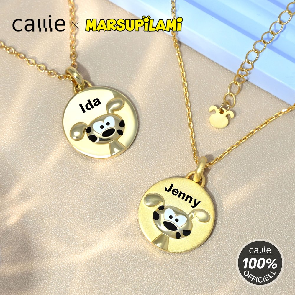 Marsupilami skapades av den belgiska serietecknaren André Franquin 1952 och är en djungelvarelse med gul päls, svarta fläckar och en superflexibel, lång svans. Detta halsband har samma designkoncept, med Marsupilamis bild på framsidan, som kan anpassas med ditt namn, och en lekfull svans på baksidan. Det tillfredsställer inte bara IP-fansens behov utan gör det också möjligt för dig att visa upp din personliga stil genom sin unika design.