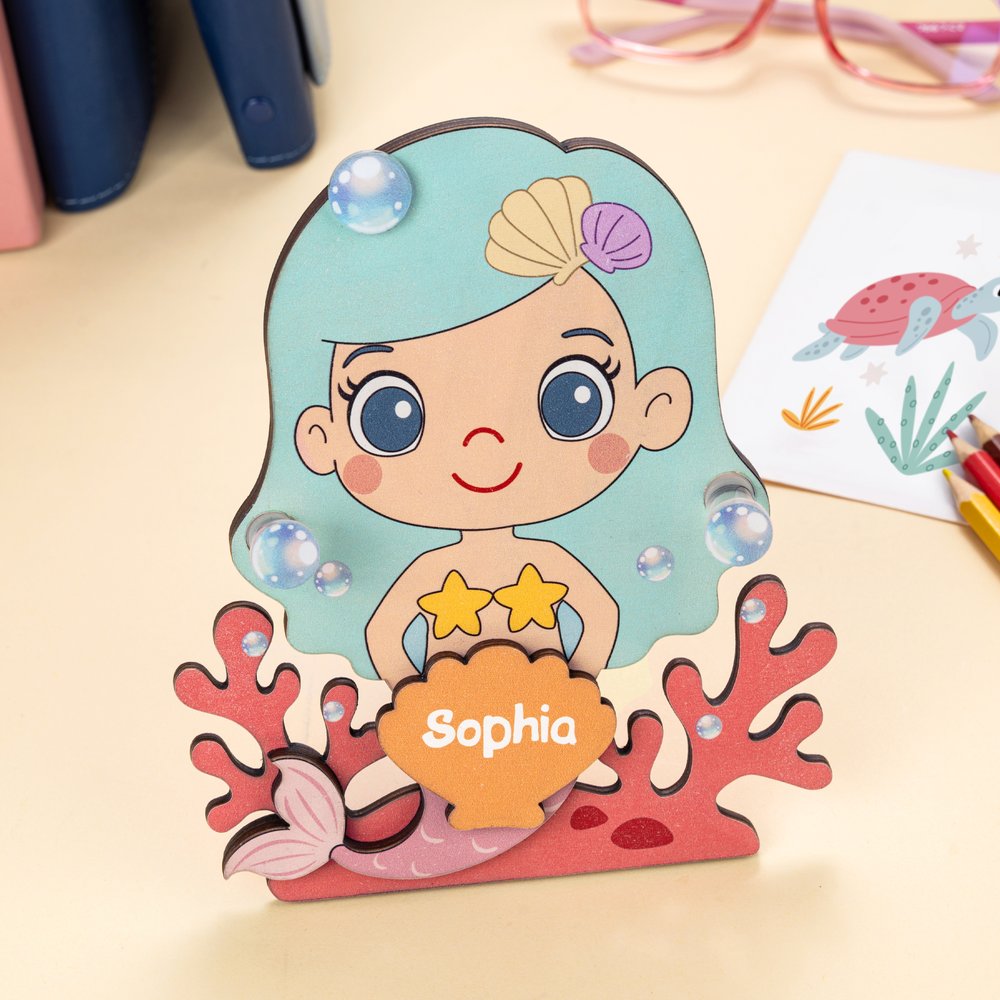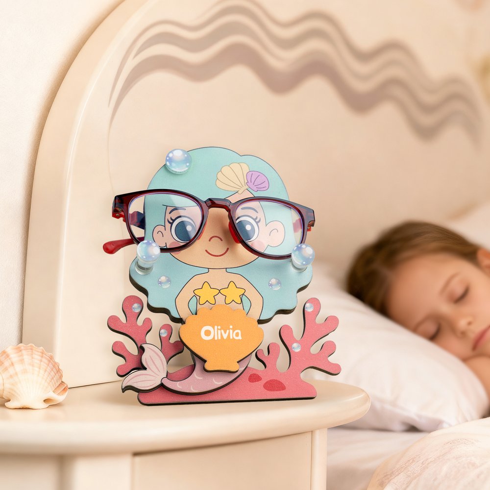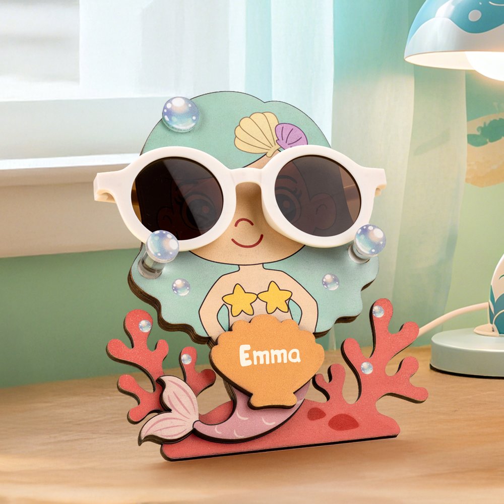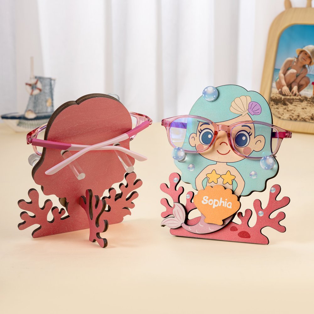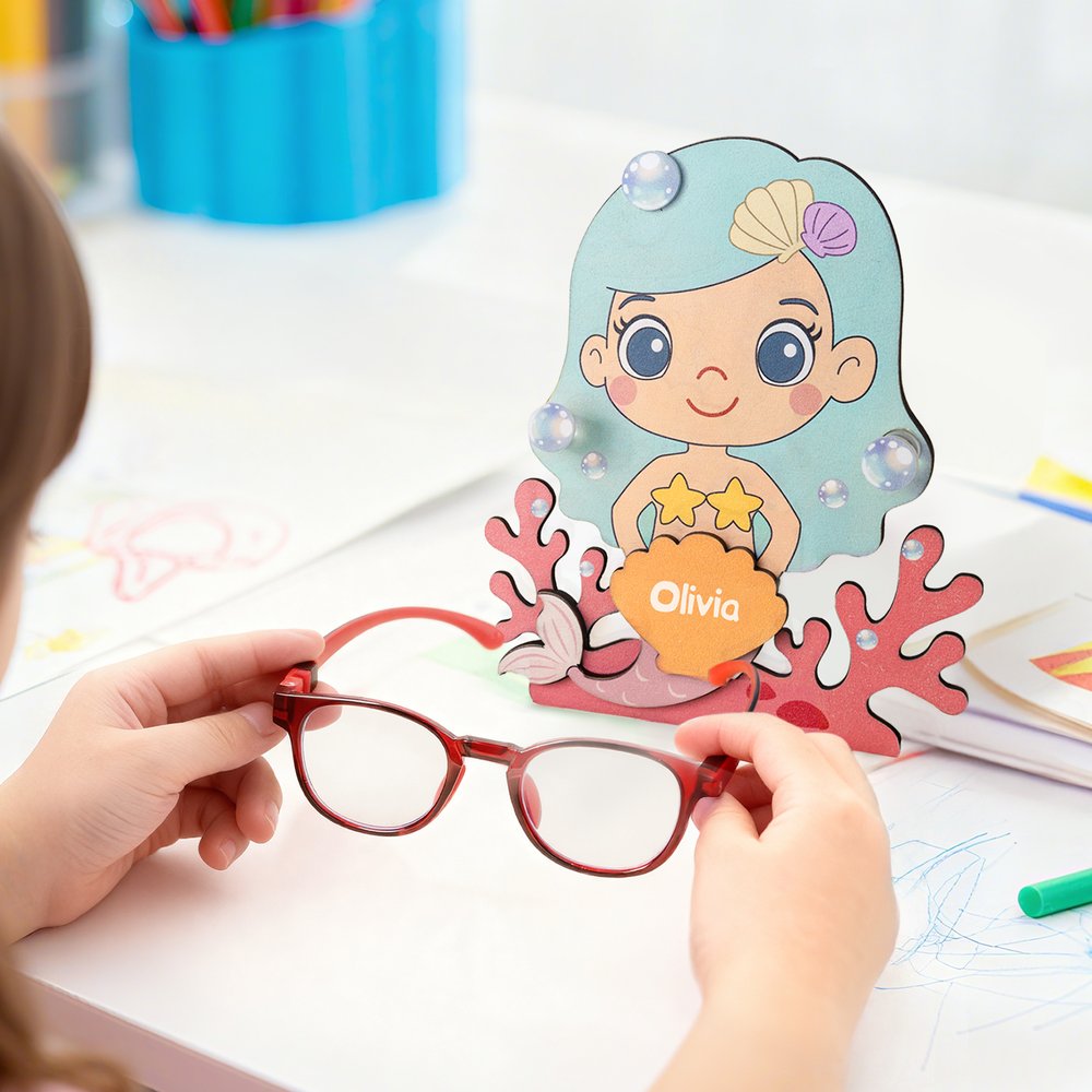 Den här glasögonbågen, som är särskilt utformad för barn och kan anpassas med barnets namn, har en sjöjungfruinspirerad design som på ett smart sätt innehåller marina element, inklusive koraller, snäckor och bubblor. Designen är livlig och bedårande och passar perfekt för barns estetiska smak. Det är inte bara en vacker skrivbordsdekoration, utan hjälper också barn att utveckla vanan att hålla ordning på sina glasögon.