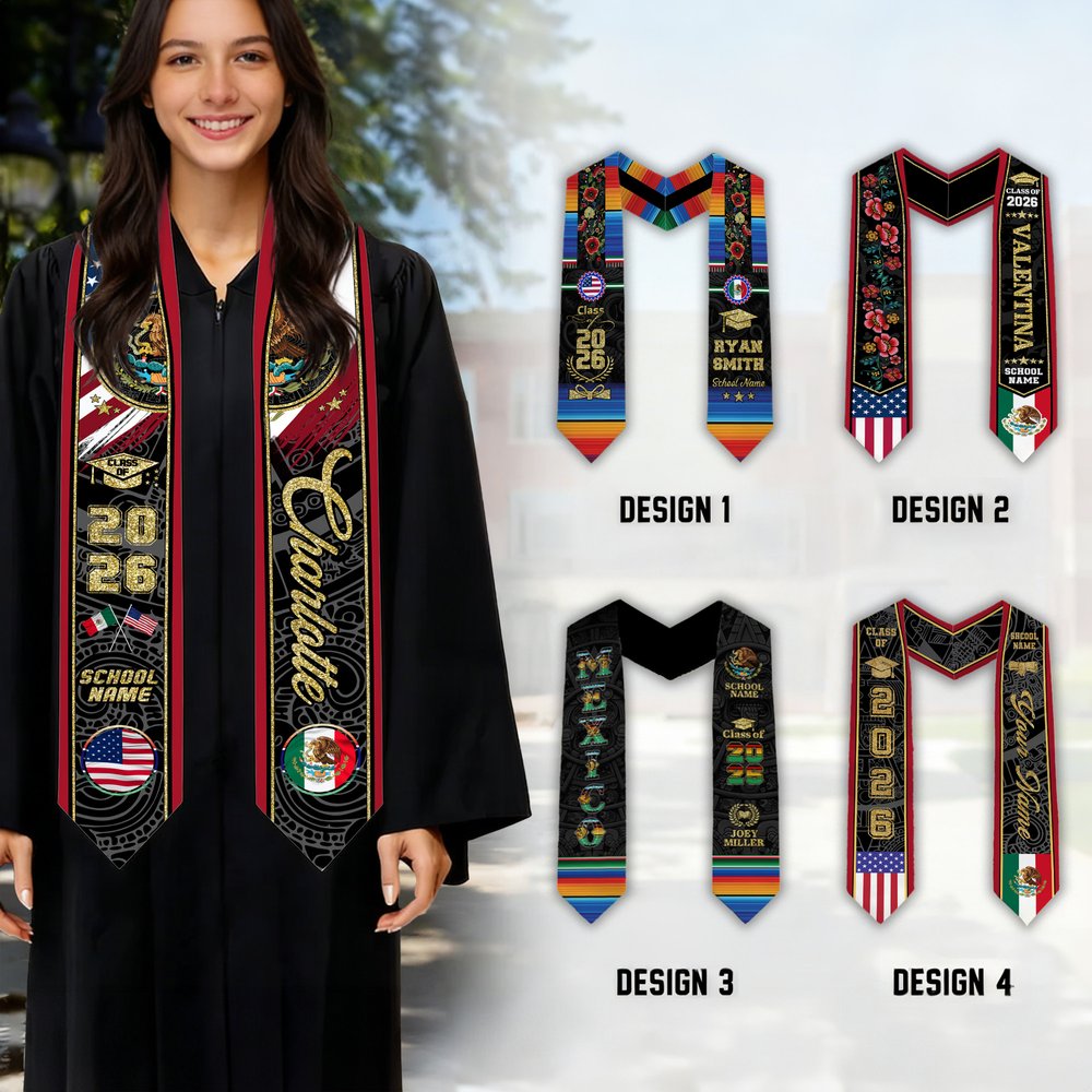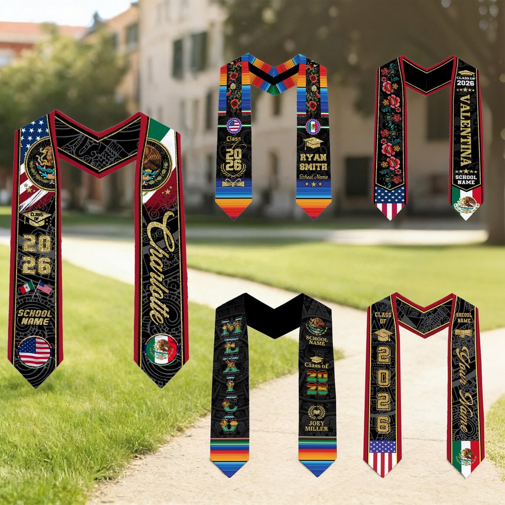 Personlig mexikansk amerikansk flagga Graduation Stole med namn och år Graduation Celebration Gift för klass 2026-akademiker