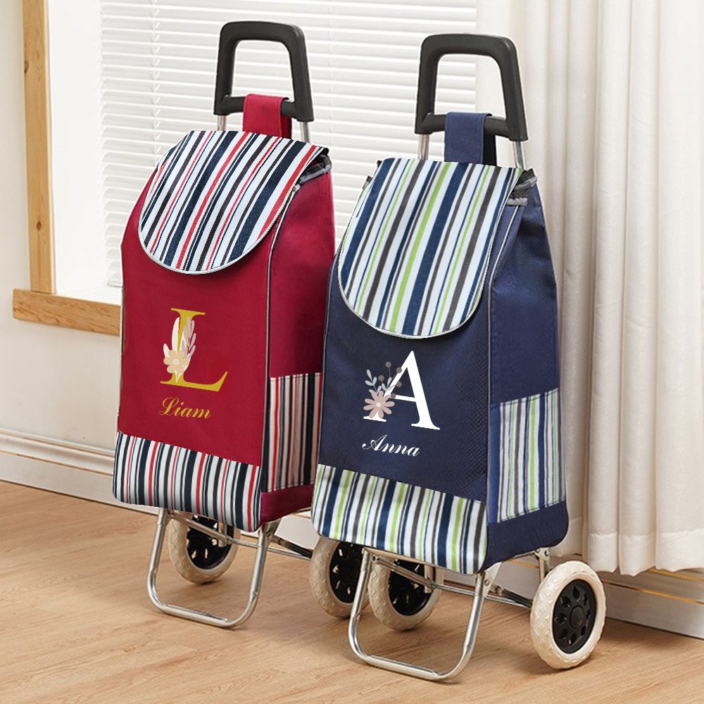 Vår kundvagnsväska har fyra olika snygga mönster, inklusive blommotiv, kransar och monogram. Du kan skräddarsy den med snygga namn eller initialer, så att din väska verkligen sticker ut i mängden.
