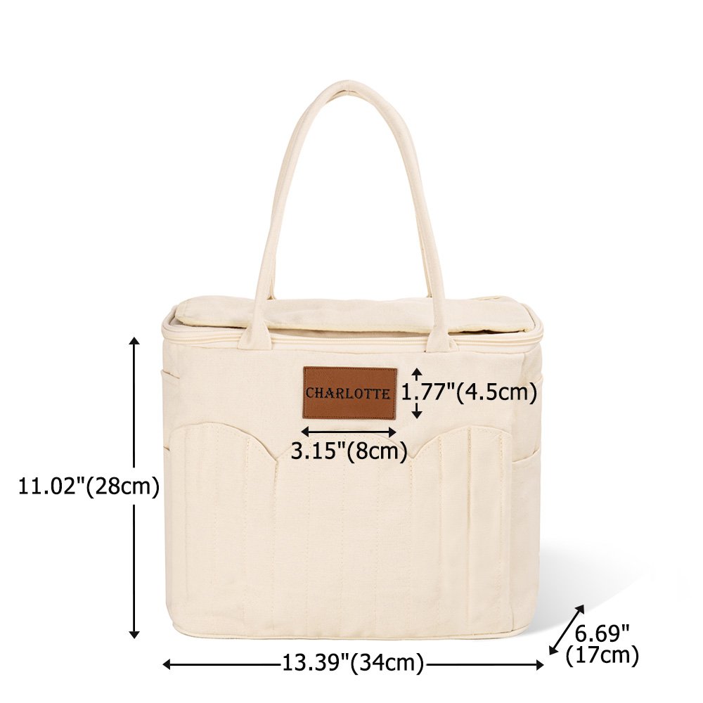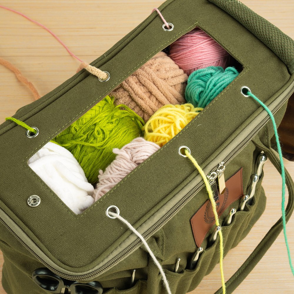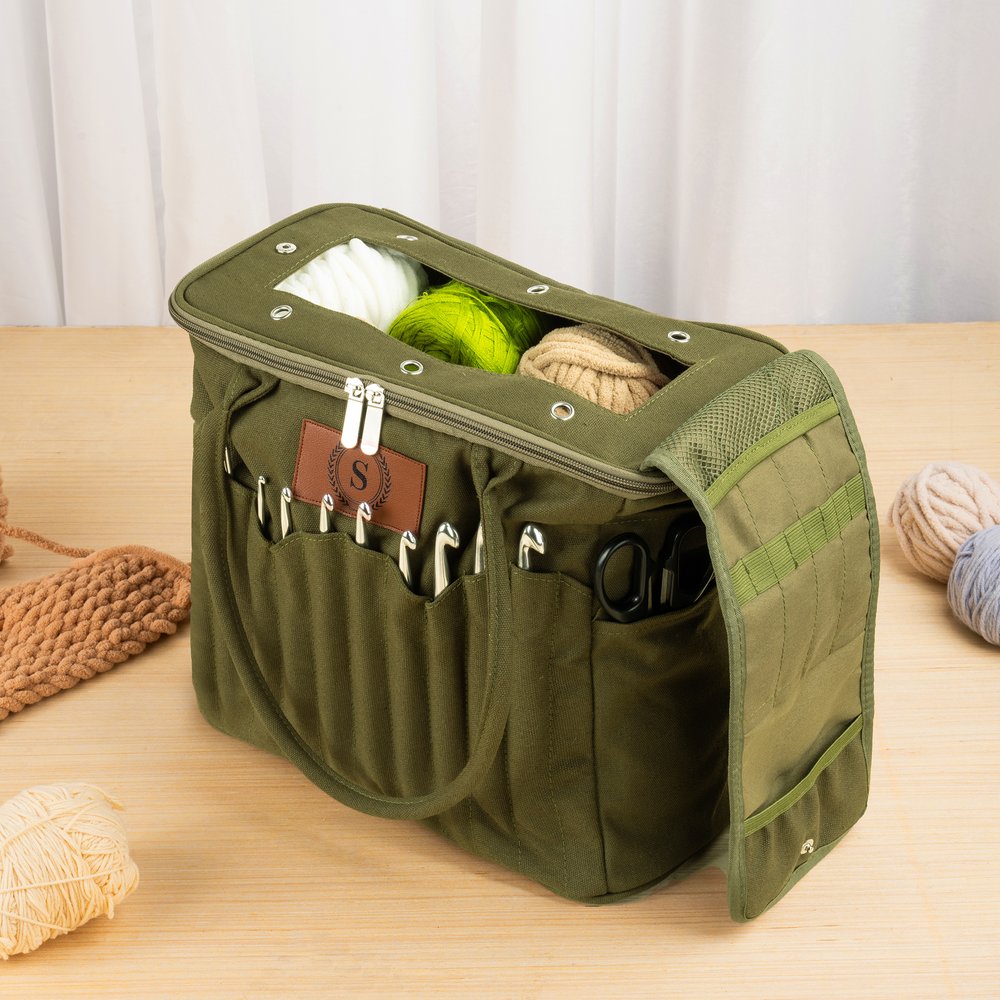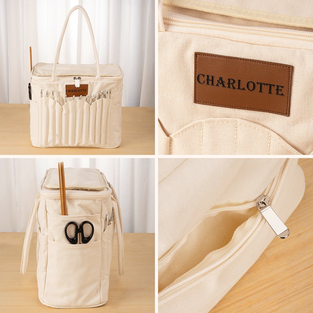 Tillverkad av högkvalitativ, slitstark canvas, tyget är mjukt, tjockt och robust. Den rymliga insidan rymmer flera garnnystan. Förstärkta sömmar och smidiga dragkedjor gör den mer bekväm att använda, och robusta handtag för enkel bärning säkerställer att din förvaringsväska är hållbar. Väskans foder är mjukt och slätt för att förhindra att garnet fastnar, så att du enkelt kan skapa handgjorda verk.