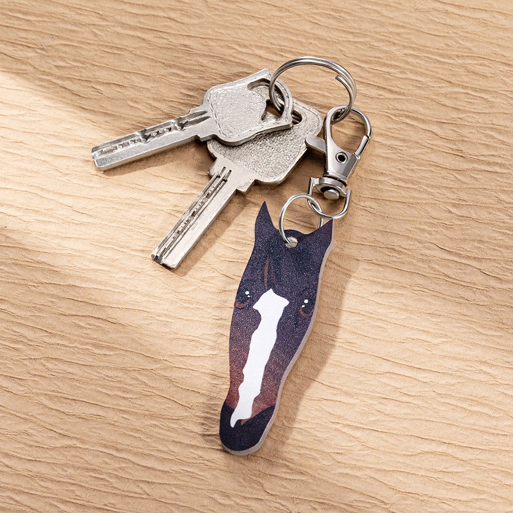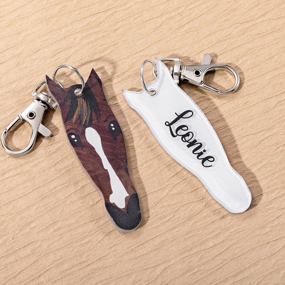 Varje häst är unik i världen. Denna nyckelring stöder uppladdning av foton och anpassning av hästens verkliga födelsemärken och ansiktsdrag. Det finns flera hudfärger att välja mellan, vilket gör utseendet på din älskade häst levande och varmt. Med ett anpassat namn kommer du att fyllas med minnen och värme varje gång du tittar på varandra.