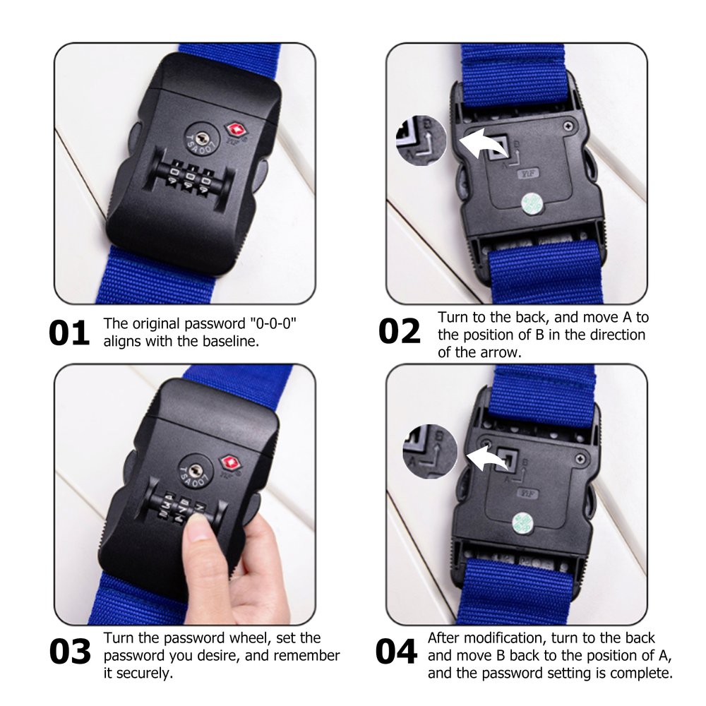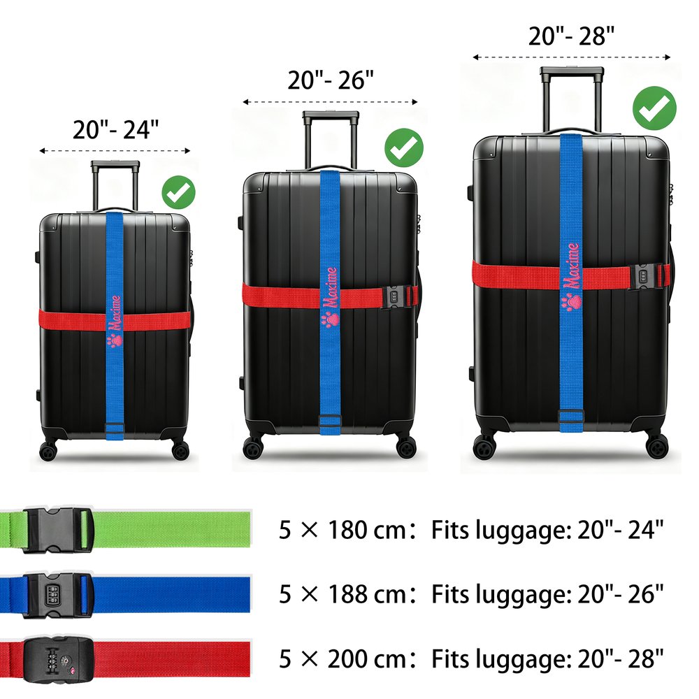 Längden är justerbar och passar perfekt till vanliga 20"-28" resväskor, resväskor och portföljer. Den förbättrar effektivt bagagesäkerheten och minskar skador från ovarsam hantering under transport. Oavsett om det gäller bagageincheckning på flygplatsen, bilresor, kryssningssemestrar eller affärsresor spelar det en viktig roll och kan identifiera bagage exakt.