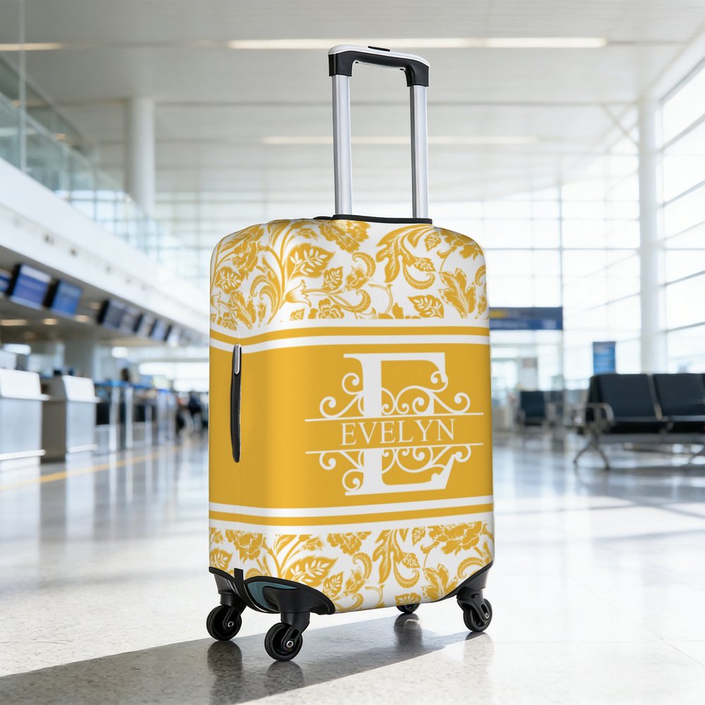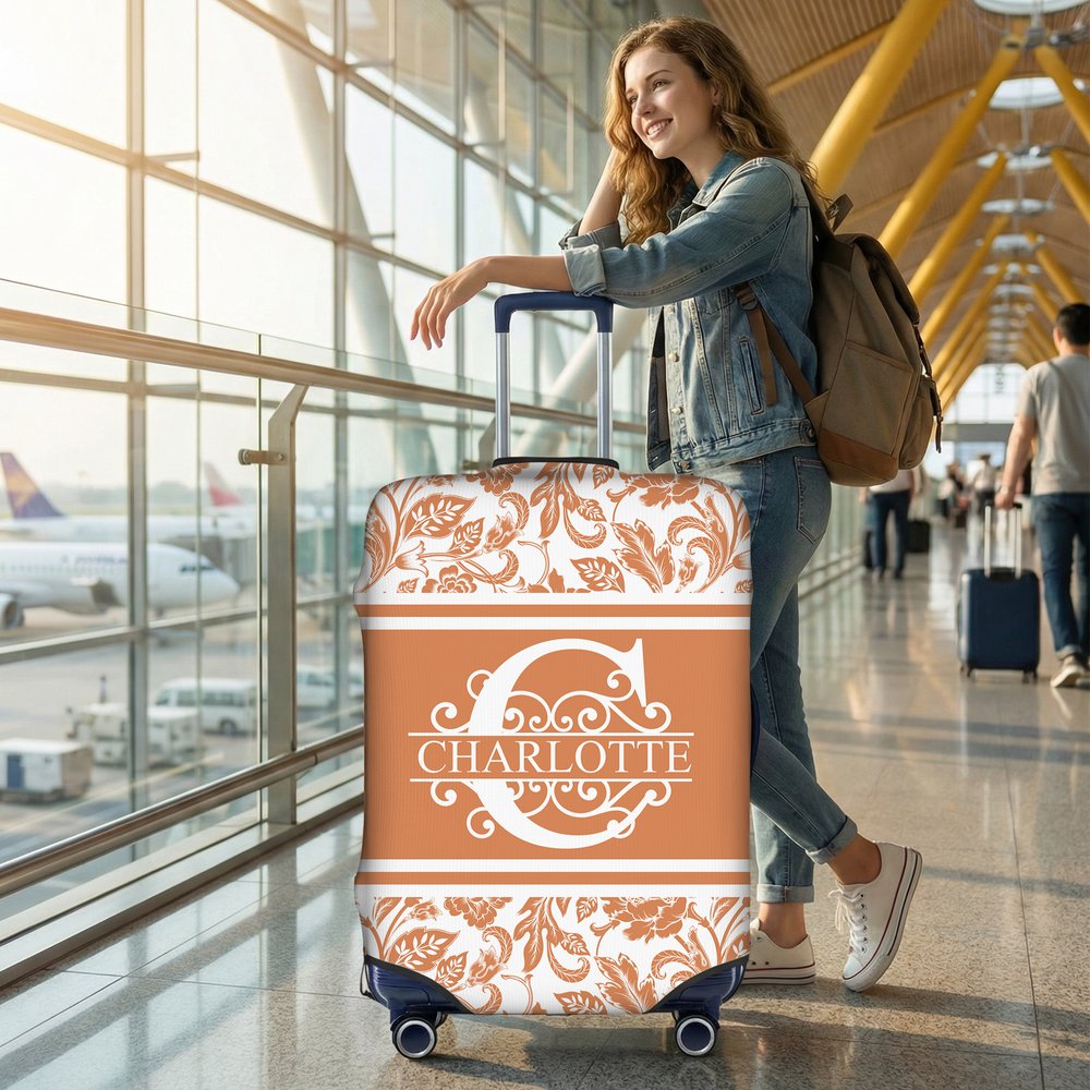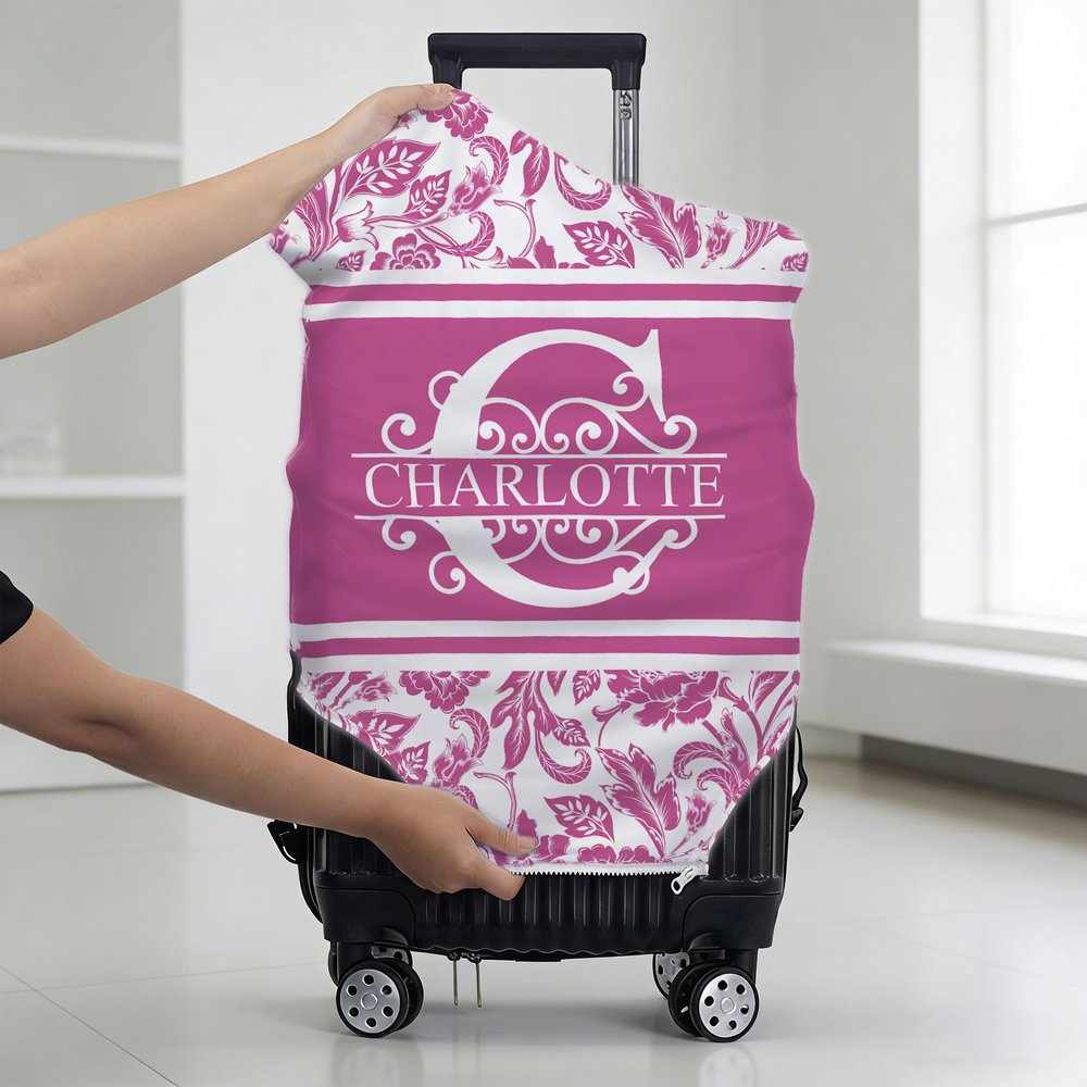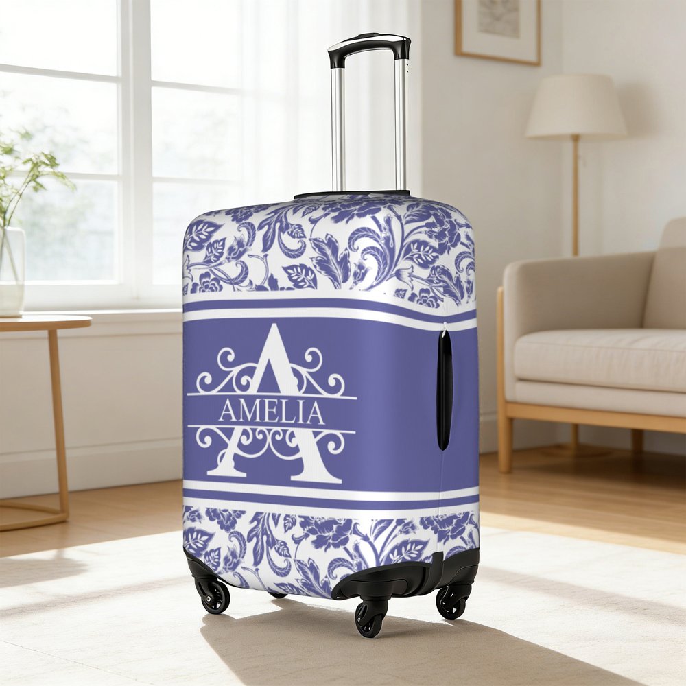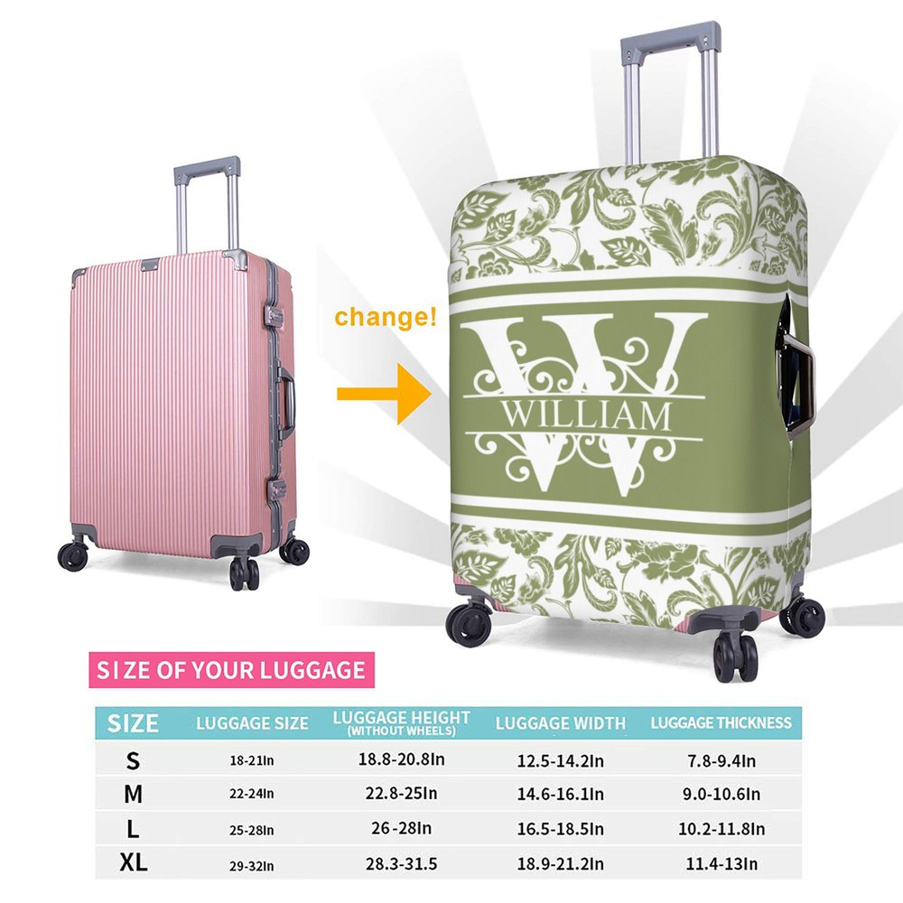 Detta bagageskydd har ett charmigt, flerfärgat blommönster med delikata texturer och rika färger som kombinerar naturlig skönhet med personlig känsla. Det kan anpassas med en initial och ett namn, som kompletterar de omgivande blomdekorationerna för en perfekt sammanhängande design och förbättrad personalisering, vilket gör att ditt bagage omedelbart känns igen på flygplatsen.