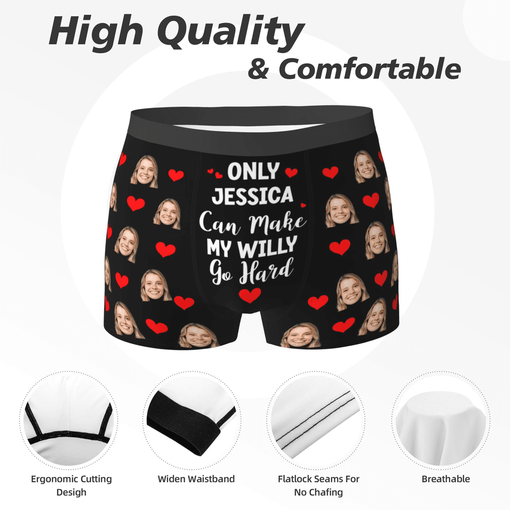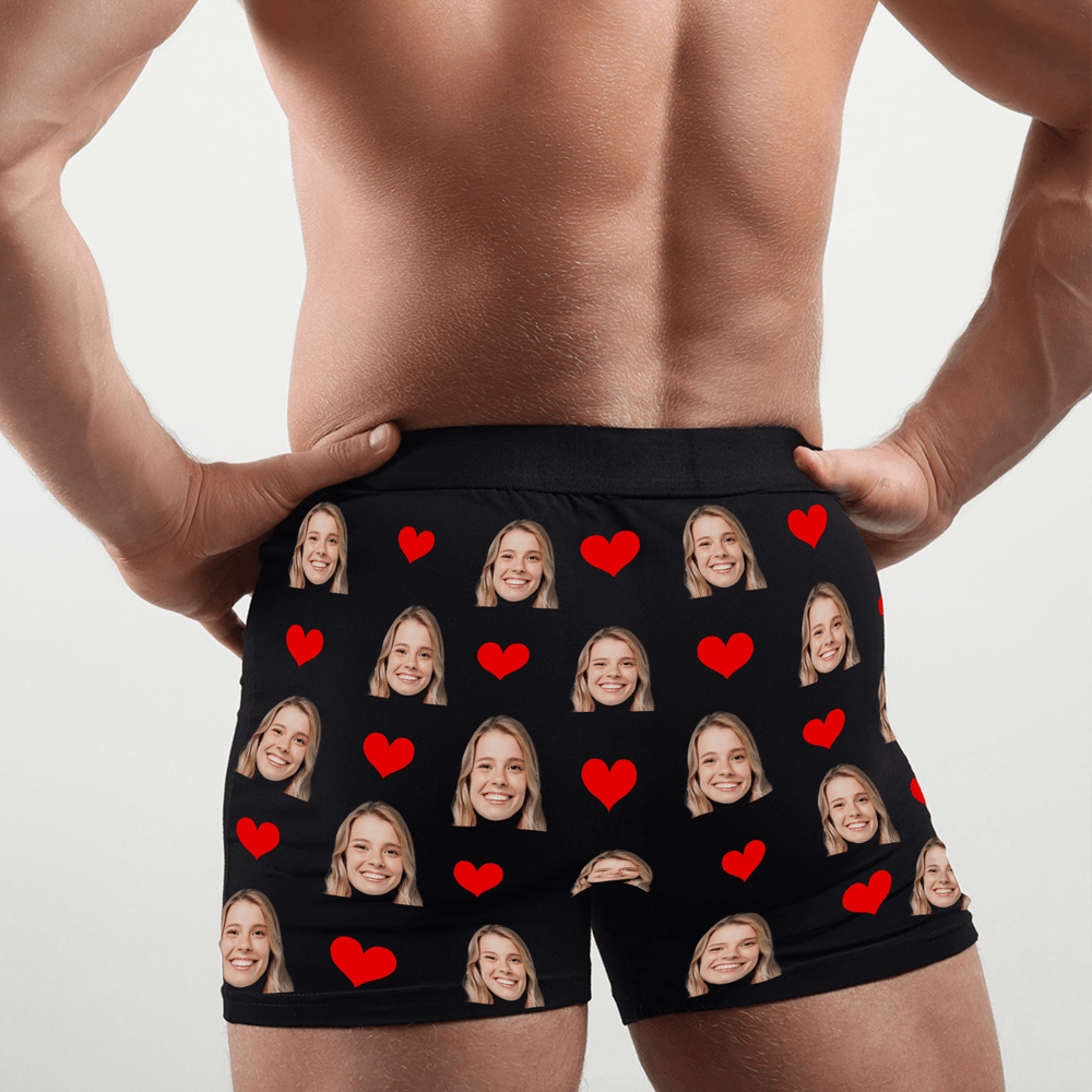 Stöder gratis uppladdning av foton, vilket gör att anpassade bilder kan tryckas helt på ytan av boxershortsen. Mönstret sträcker sig till sidorna för en 360° lekfull visning och förvandlar vardagskläder till ett kreativt uttryck för tillgivenhet.
