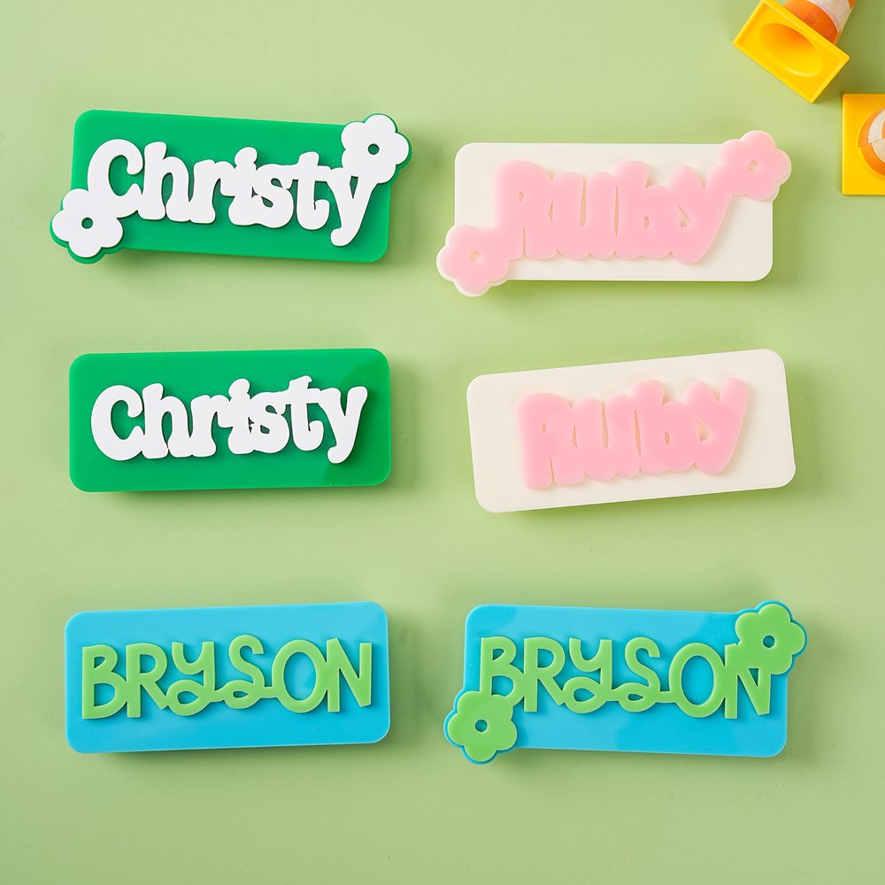 Detta väsktillbehör sticker ut med sin anpassningsbara namndesign, som erbjuder en mängd olika bakgrundsfärger och namnfärgsalternativ. Den tillför en lekfull och livlig stil till din väska och förbättrar både dess modeintresse och estetiska tilltal. Den är perfekt för att matcha olika klädstilar och tillfällen och är tillverkad av mjukt men hållbart akrylmaterial och högkvalitativ kvalitet som motstår dagligt slitage. Den är lätt och praktisk och tynger inte ner din väska.