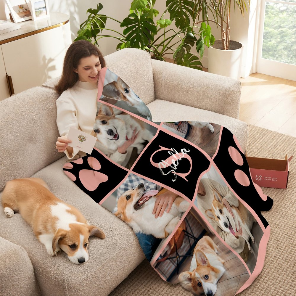 Skapa en helt personlig pläd genom att lägga till 6 bilder av ditt husdjur, tillsammans med namn eller initialer. Varje bildruta blir ett unikt minne som fångar dina mest älskade stunder. Denna pläd blir ett exklusivt och sentimentalt objekt som bara du kan ha.