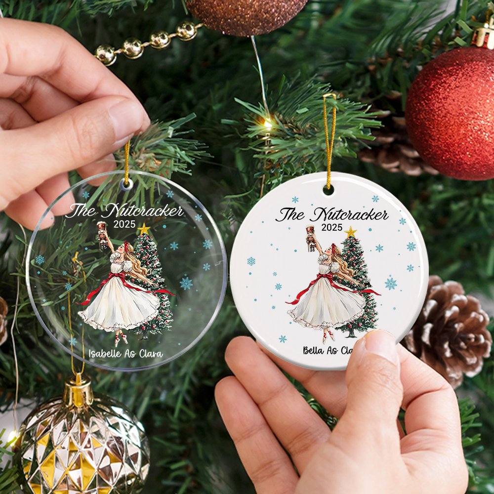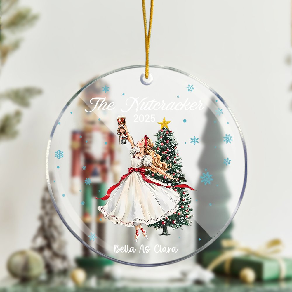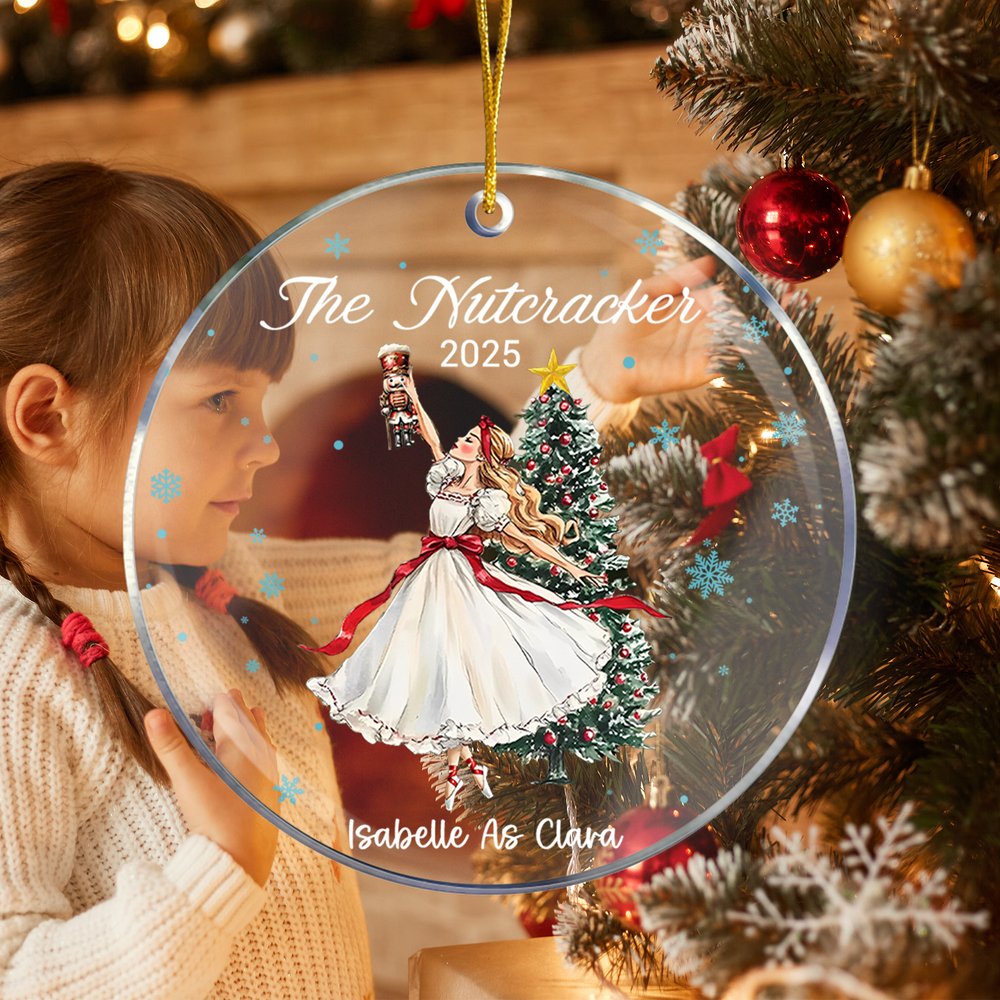 Med den älskade Clara från baletten Nötknäpparen ger den här prydnaden en touch av magi och nyckfullhet till din julgran. Du kan anpassa den med namn och datum, vilket gör den till en unik minnessak.