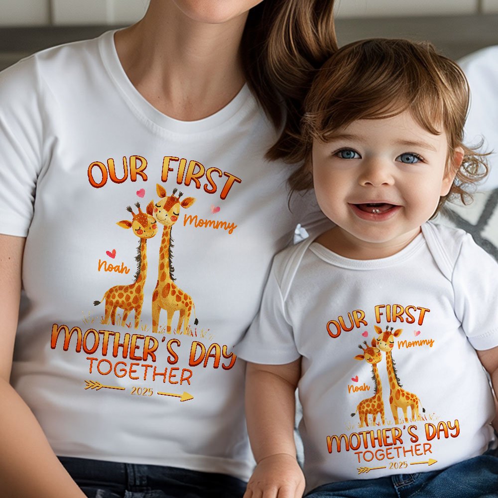 Personifierad 2025 Vår första Mors dag Tillsammans Giraff T-shirt med namn Mors dag present till henne