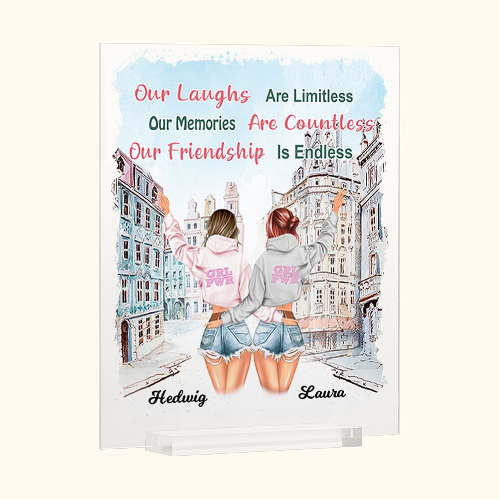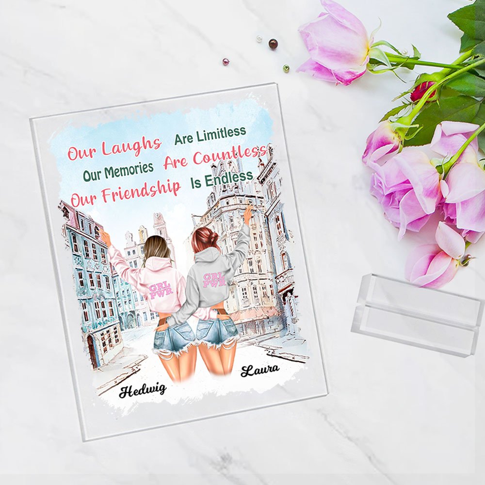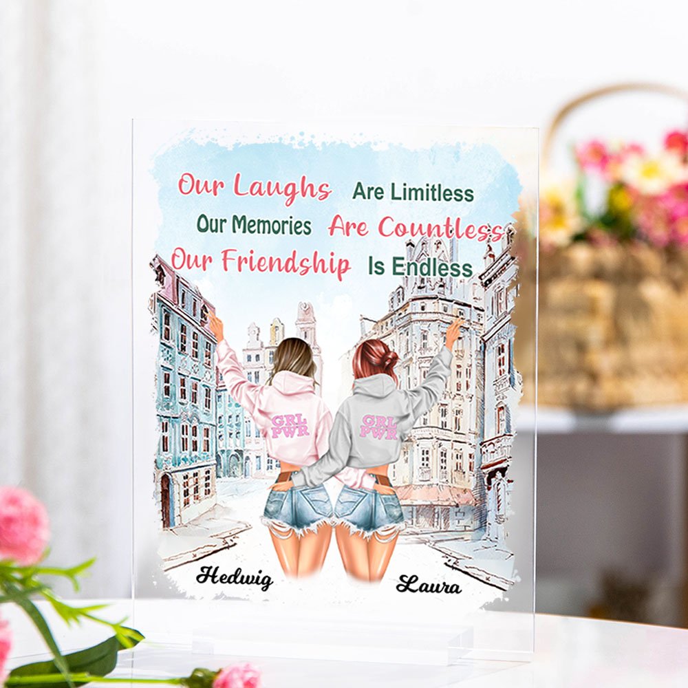 Personifierad Våra skratt är obegränsade Våra minnen är otaliga Vår vänskap är oändlig Akrylplatta Bästa vän gåva Skrivbordsprydnad