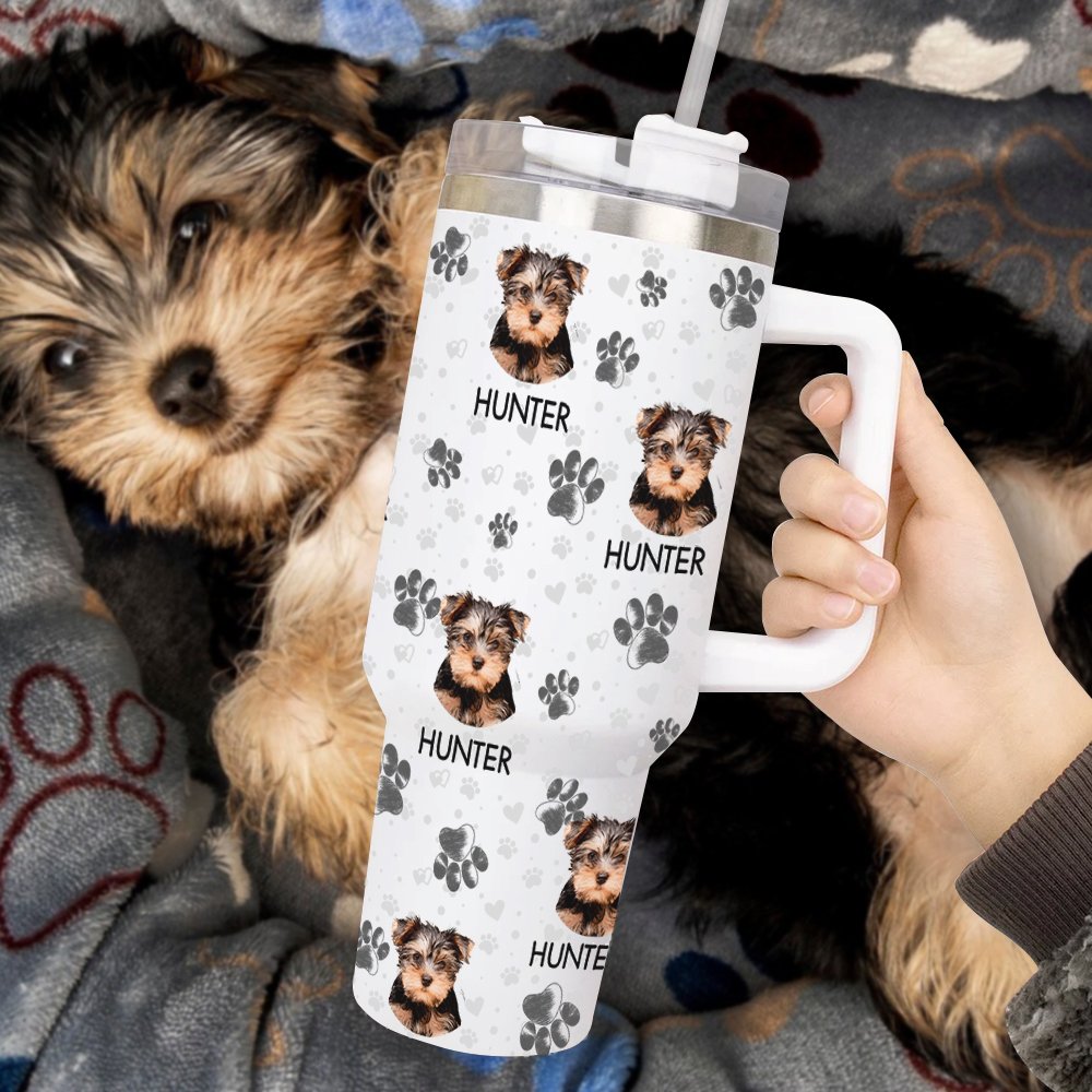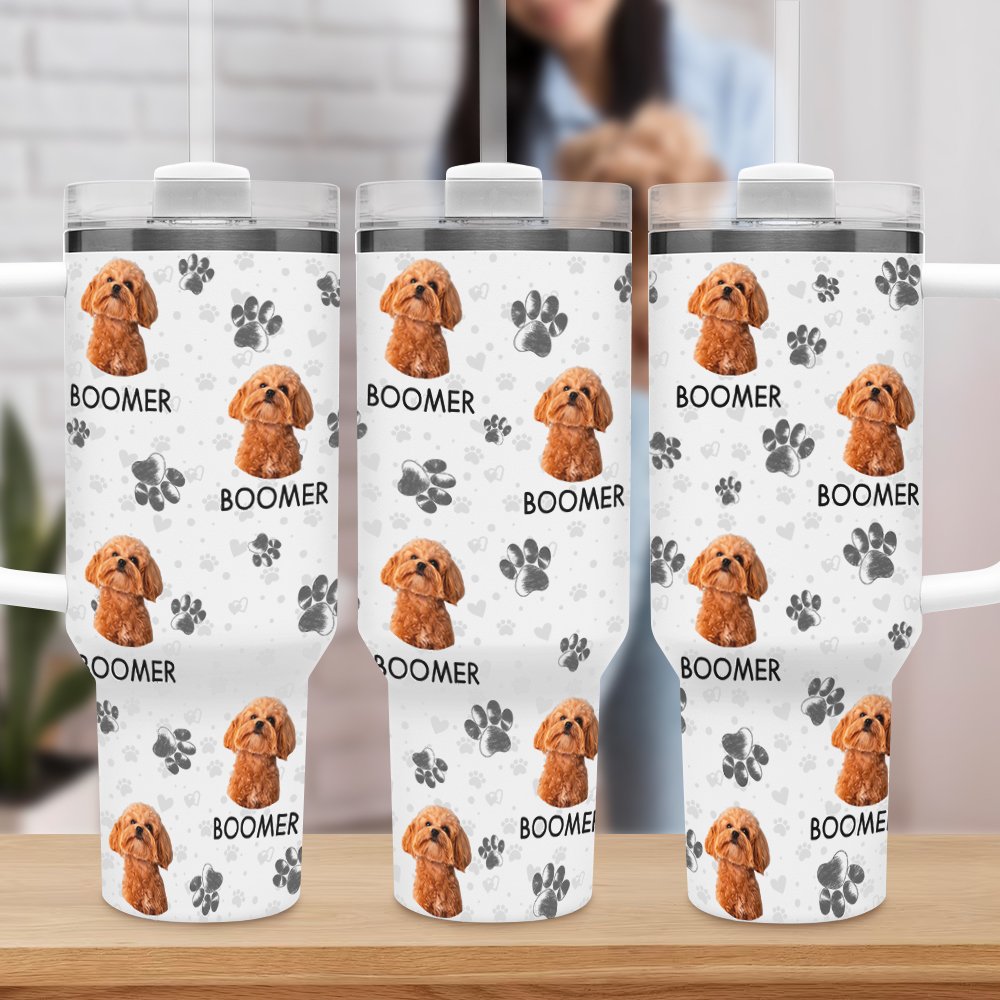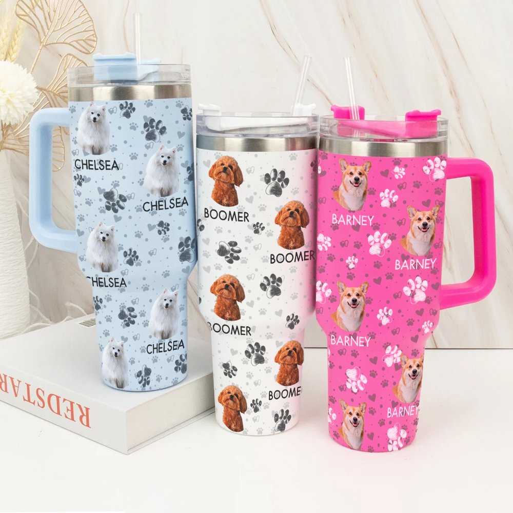 Detta dricksglas kan anpassas med ditt husdjurs söta foto och namn, tillsammans med söta tassmönster, för att visa din kärlek till din håriga vän.