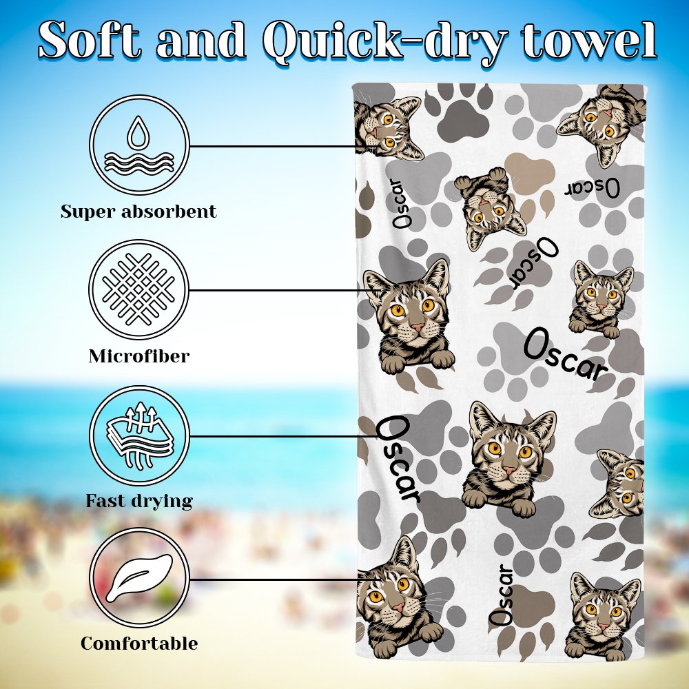 Anpassa denna strandhandduk med djurrasmönstret eller till och med ditt husdjurs foto och namn, vilket gör den till ett unikt och bedårande tillägg till din strand- eller poolutrustning. Den personliga touchen med bilden av din håriga vän ger en speciell charm och känsla till din handduk.