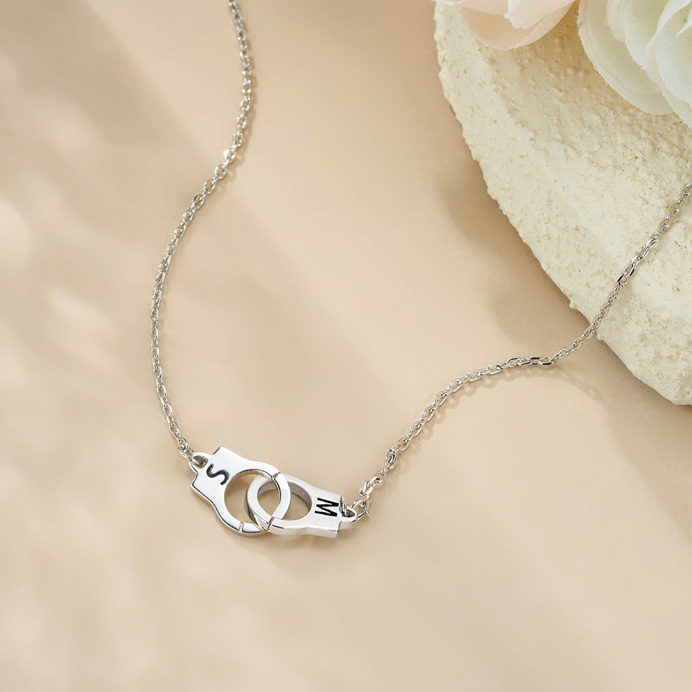Hängsmycket på detta halsband, med temat "Bound by Love", hämtar inspiration från polisens handbojor och uppmuntrar till styrka, skydd och samhörighet mellan kvinnor. Halsbandet är speciellt designat för par och symboliserar enighet och tillgivenhet, med två sammanlänkade handbojor som bildar en oändlighetssymbol. Dessutom kan du anpassa dina och din partners initialer på hänget för att visa upp din personlighet.