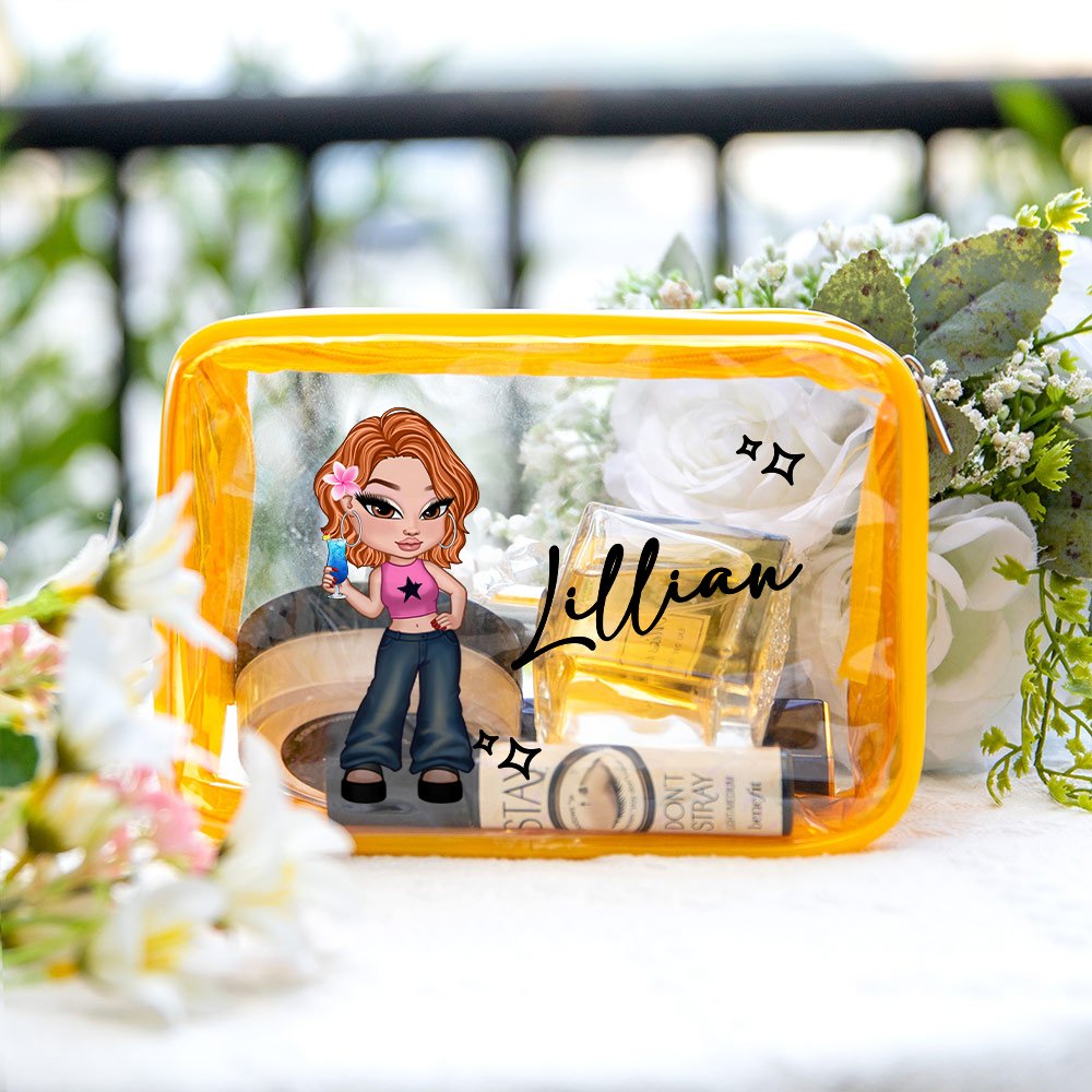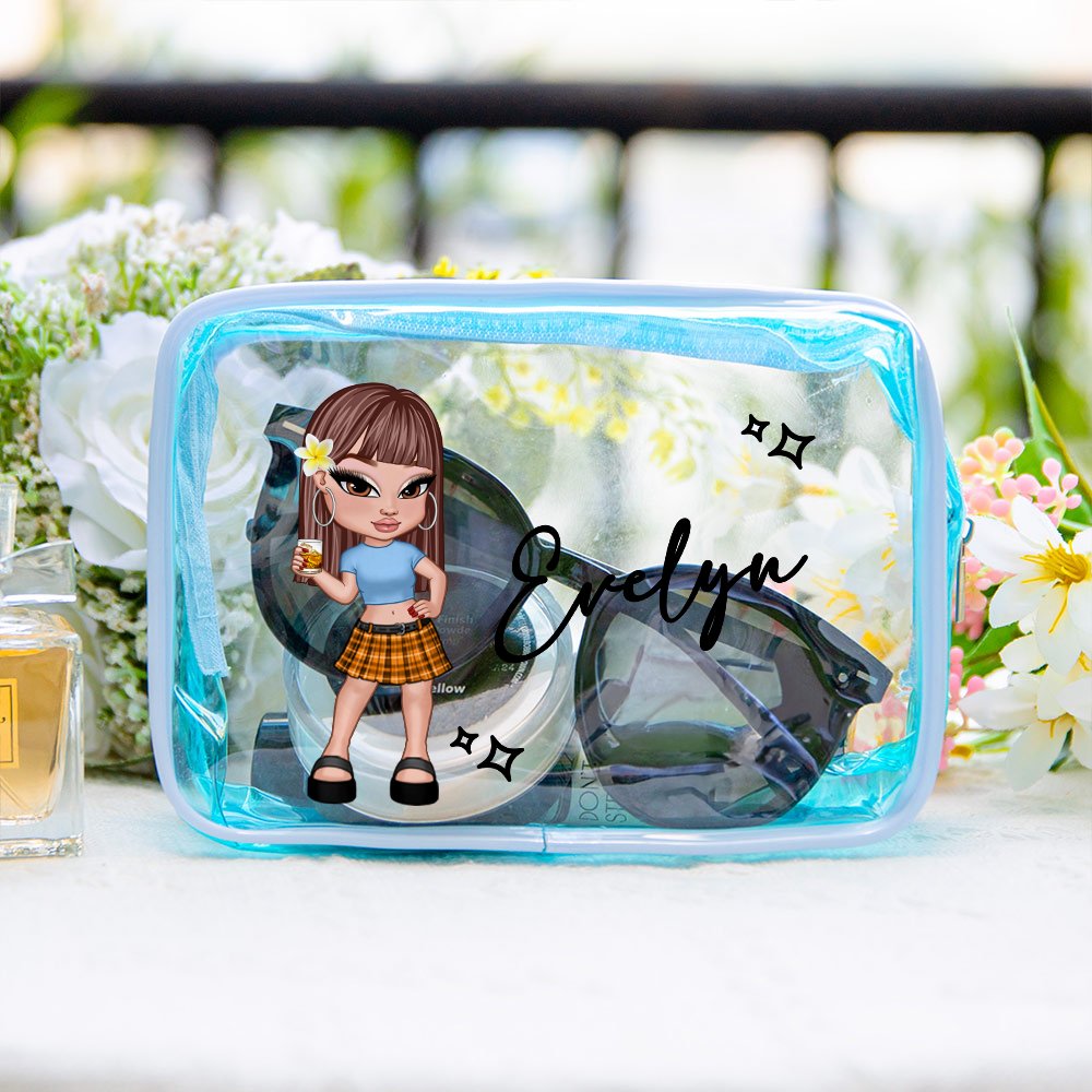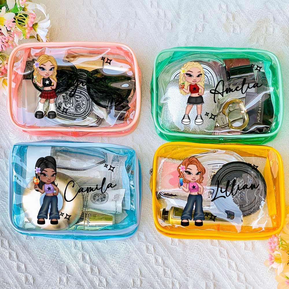 Omfamna individualitet med denna utsökta Y2K klassiska sminkväska med tecknad flicka. Den är utformad för att visa upp din distinkta stil och kan anpassas med din favorit Y2K-inspirerade seriefigur och till och med ditt namn, vilket gör den till en unik accessoar som perfekt återspeglar din personlighet.