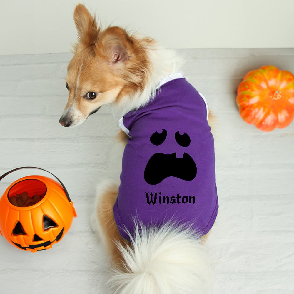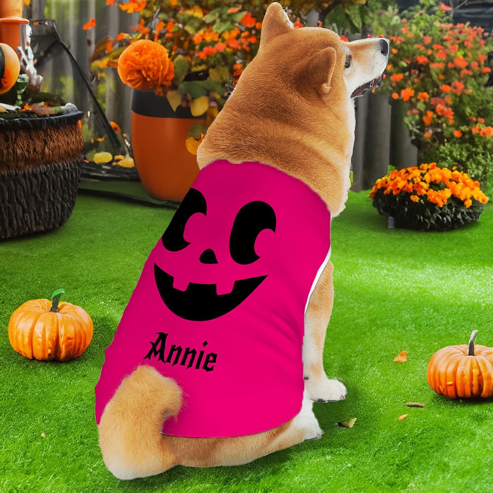 Med hjälp av designelementen i Halloween-pumpan-emojin erbjuder denna skjorta för husdjur upp till 20 olika ansiktsuttryck som du kan välja mellan, från ett varmt leende till ett roligt ansikte. Varje uttryck kan exakt förmedla ditt husdjurs unika personlighet och humör. Vi erbjuder 14 olika färger för dig att välja mellan, och möjligheten att anpassa ditt husdjurs namn på skjortan ger en exklusiv känsla till detta snygga föremål.
