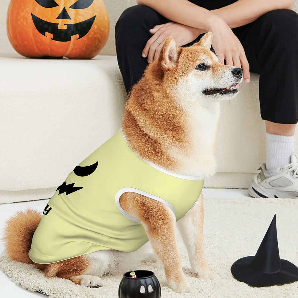| Funktion: | Bekväm, mjuk och hudvänlig, ärmlös skjorta för husdjur, flera färger, mönster med pumpaansikte |