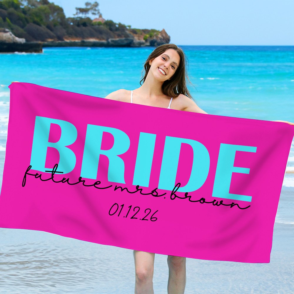 Den här handduken är perfekt för blivande brudpar eller som en omtänksam present till bröllopsgäster, strandälskare, poolpartyentusiaster och resenärer. Det är ett hjärtligt sätt att uttrycka dina bästa önskningar för deras framtid tillsammans.