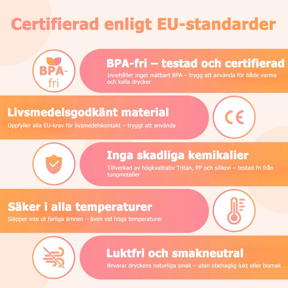 Tillverkad av livsmedelsgodkänd och miljövänlig plast – fri från BPA och andra skadliga kemikalier. Trygg för dagligt bruk av barn.
