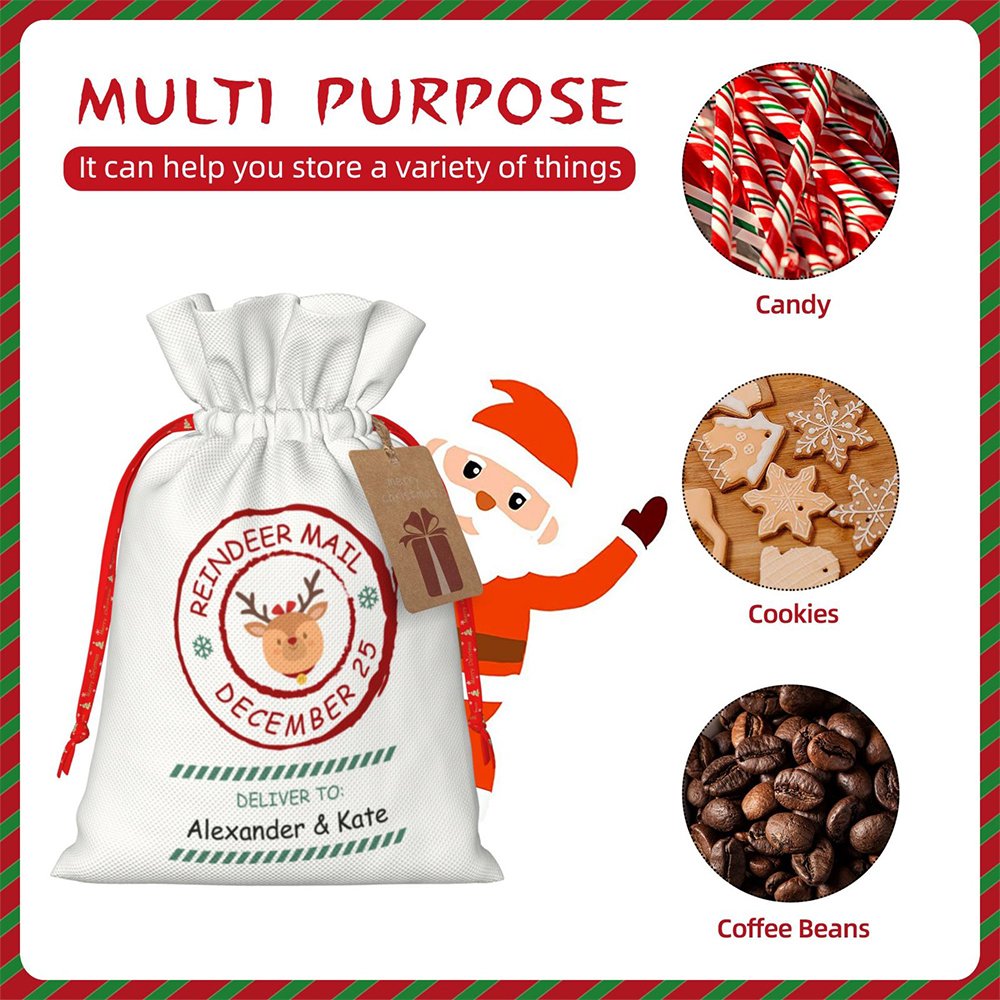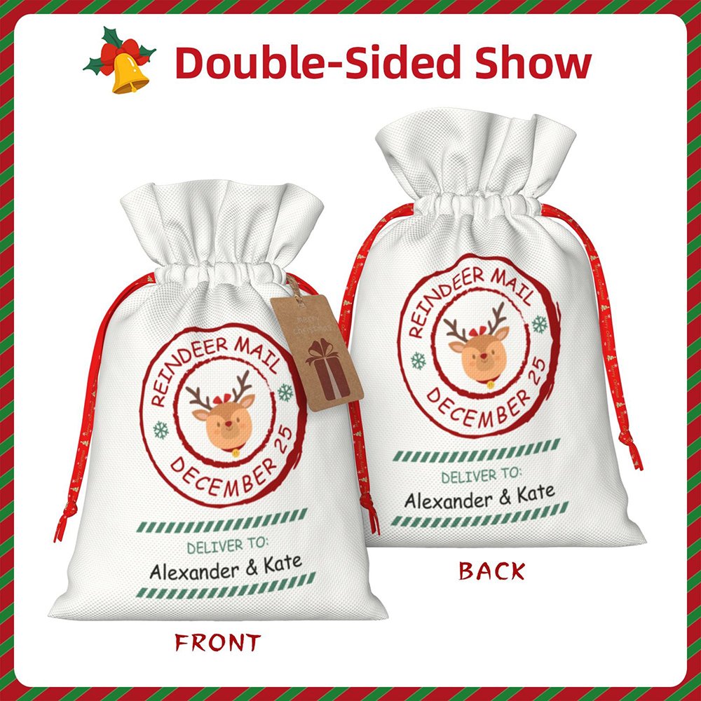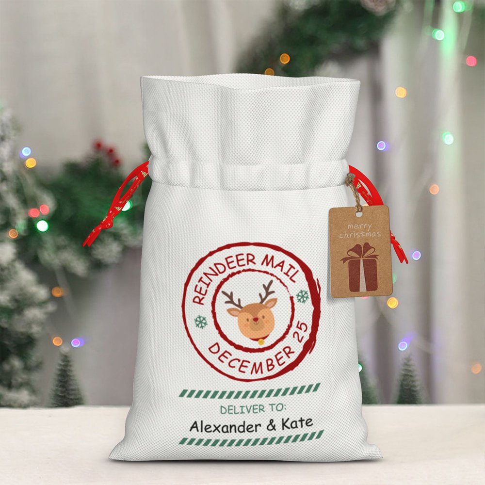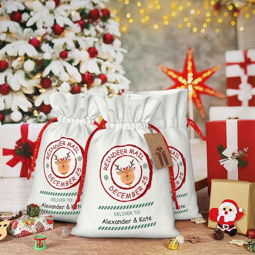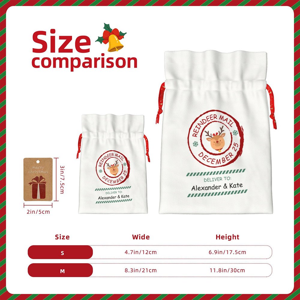 Höjdpunkten i den här presentpåsen är dess personliga design. Den har en nyckfull renpostdesign, komplett med en renstämpel och anpassade mottagarmeddelanden. Du kan lägga till mottagarens namn eller ett hjärtligt meddelande, vilket gör att varje påse verkligen blir unik. Föreställ dig glädjen i dina nära och käras ansikten när de får en gåva som är speciellt framtagen för dem.