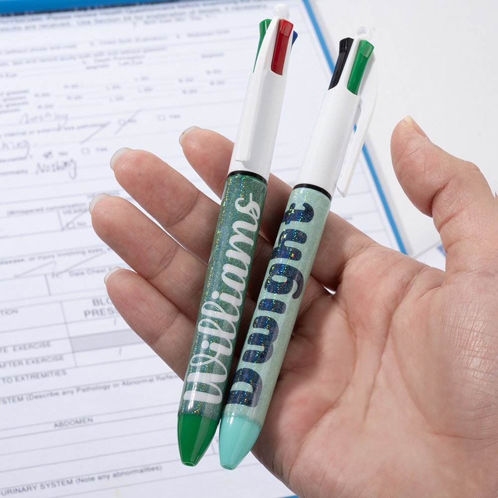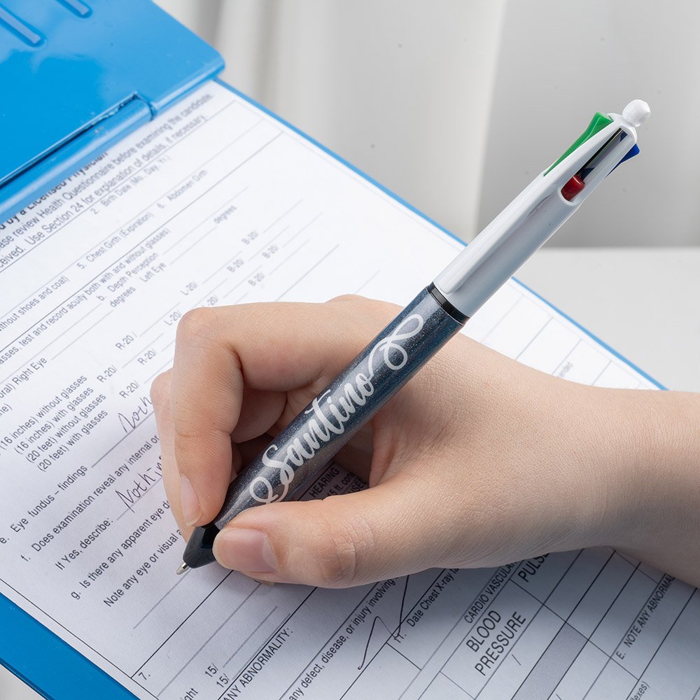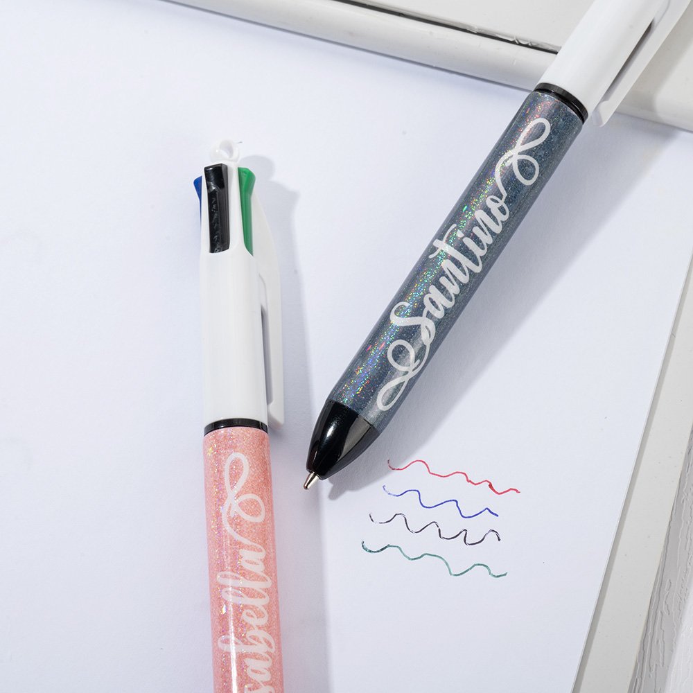 Varje penna har den ikoniska 4-i-1-designen och erbjuder svart, blått, rött och grönt bläck med ett enda klick. Du kan välja mellan 11 pennkroppsfärger och anpassa ditt namn. Oavsett om du skriver anteckningar, betygsätter papper eller färgkodar diagram, ger den här pennan bekvämlighet och mångsidighet i din dagliga rutin.