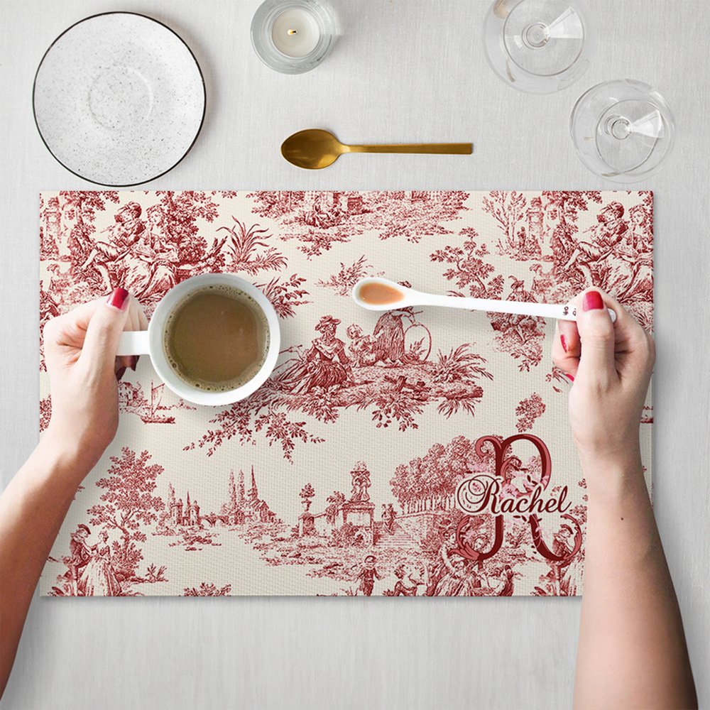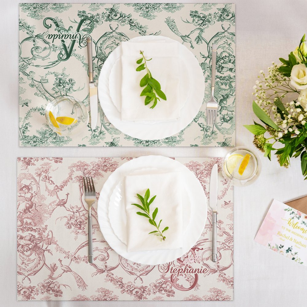 Personlig Retrostil Franskt tryck Toile De Jouy Placemat med namn och initialer Matbordsdekor Bröllop Födelsedagspresent för familj Par