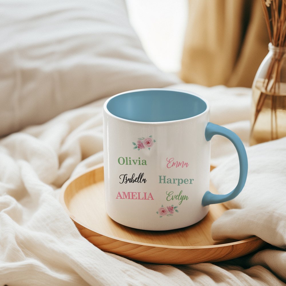 This mug boasts the unique option of customizing it with the names of multiple kids. In addition, you can choose the color of the mug's interior to make it even more personalized. The result is a product that is uniquely tailored to the recipient, resonating with warmth and affection.