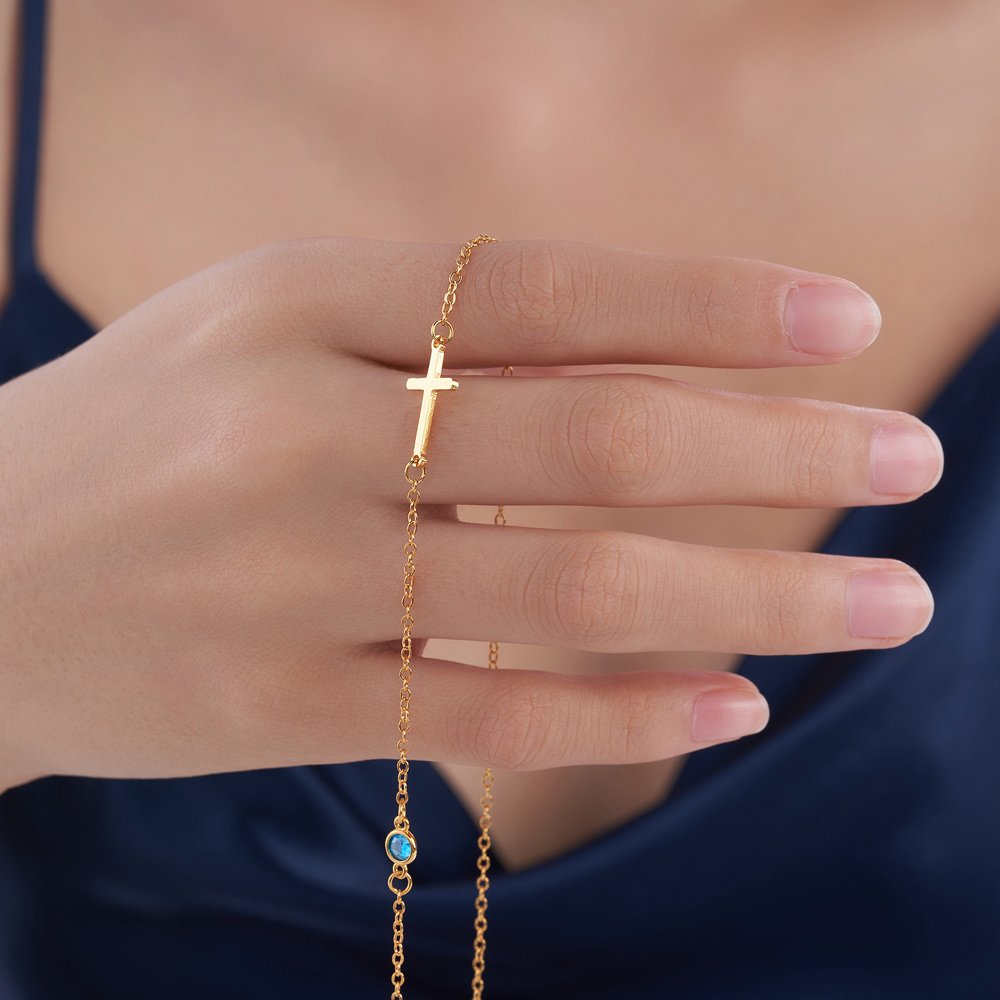 Detta halsband är utsökt utformat och unikt, med en unik sidokorsdesign och en speciell födelsesten, som visar skönheten i modern tro. Sidokorset omformar den klassiska symbolen med enkla linjer och behåller den traditionella trosbetydelsen samtidigt som det ger den en modern smak. Du kan fritt välja vilken födelsesten som ska infattas, vilket inte bara framhäver din unika personlighet, utan också för alltid graverar in den värdefulla betydelsen av din födelsemånad.