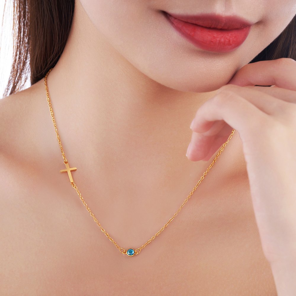 Det är en perfekt present till födelsedagar, alla hjärtans dag, mors dag eller årsdagar. Det är också en perfekt present till en flickvän, fru, bästa vän eller syster. Korset på sidan av halsbandet symboliserar tro, medan födelsestensdesignen ger det en unik karaktär, vilket gör det till en vacker och meningsfull gåva.