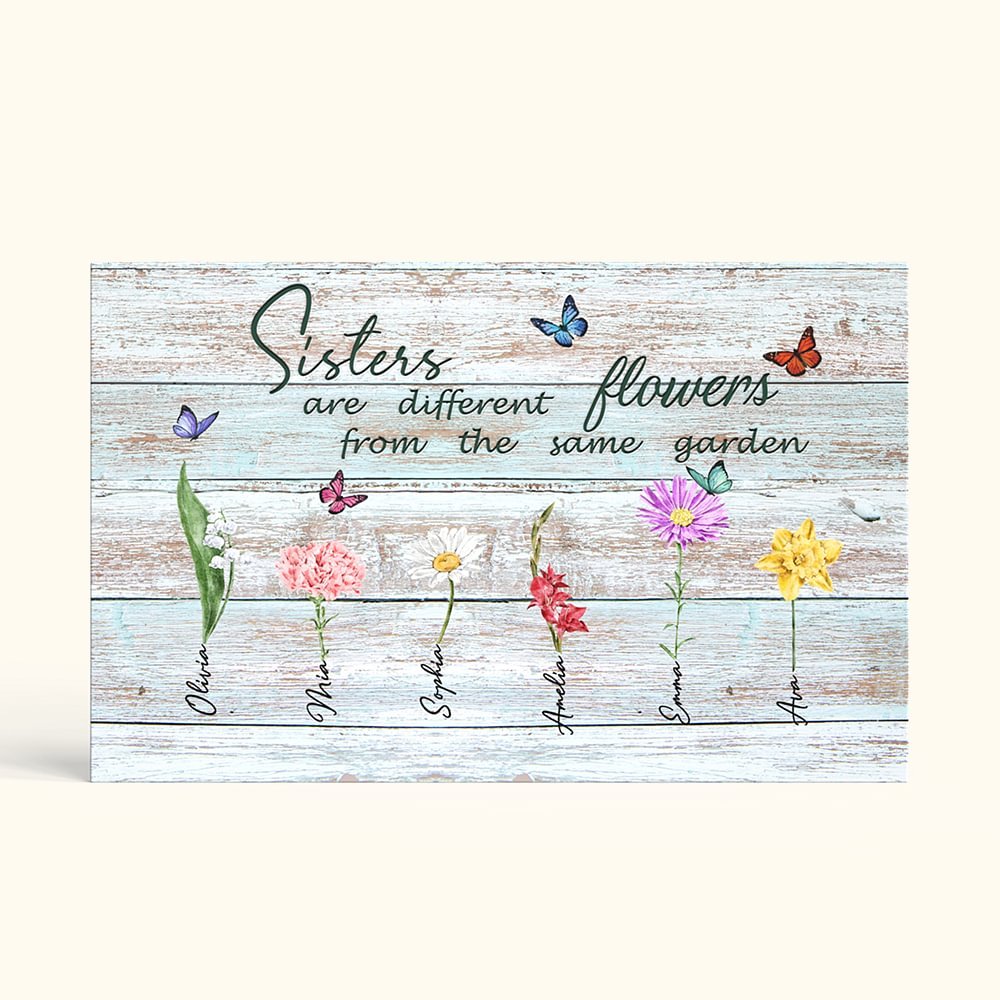 The canvas painting features the sentiment quote"sisters are different flowers from the same garden" and we offer 12 blooming flower varieties to represent the 12 months of the year. Each birth flower represents your best sister, you can design their name as well. A beautiful gift to friends to express your friendship will last forever.