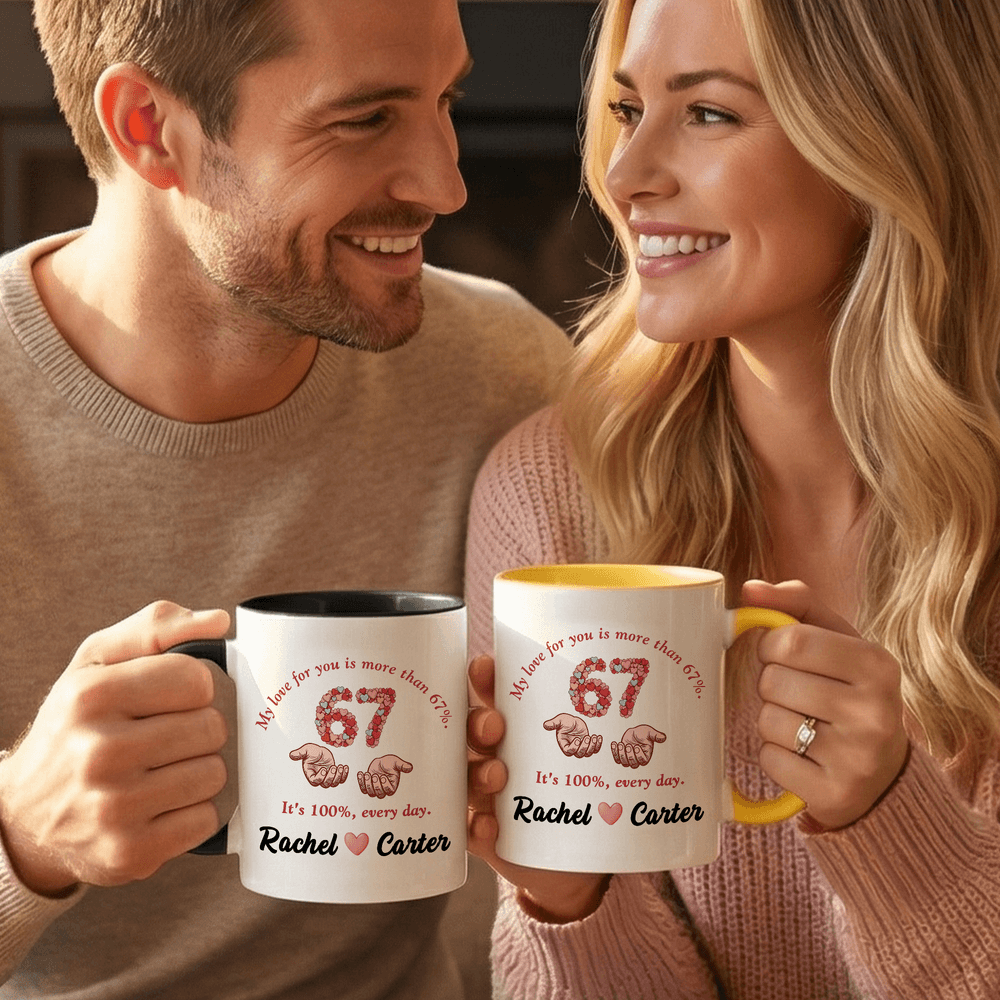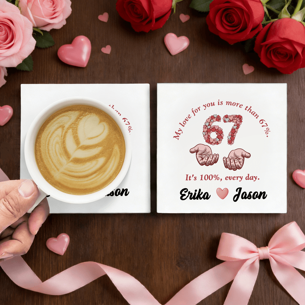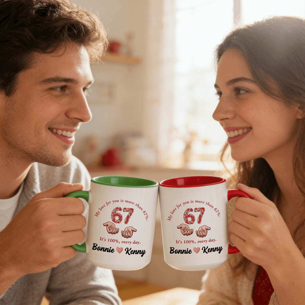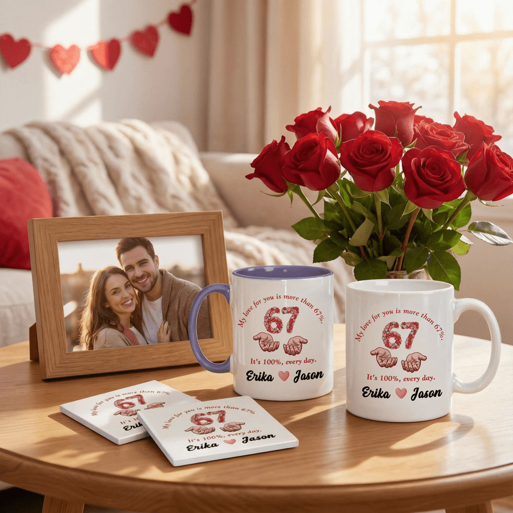 En utmärkt present till romantiska partners, par, makar - perfekt för Alla hjärtans dag, milstolpar på årsdagen eller "bara för att"-överraskningar. De anpassade namnen och "67"-slangdesignen gör det till en omtänksam, trendig gåva: den talar till din unika relation och lutar sig samtidigt mot modern romantisk humor, vilket gör den mycket mer minnesvärd än generiska gåvor.
