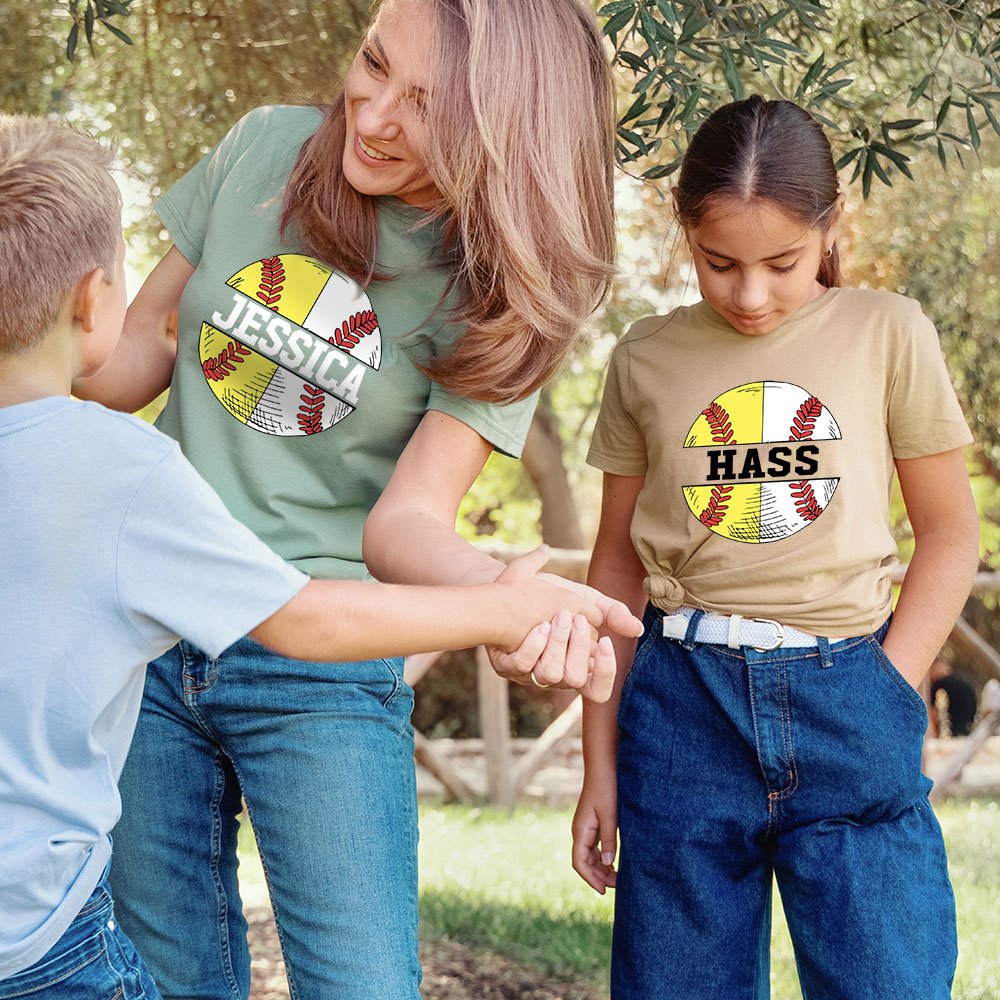 Our shirt features a unique design that combines both sports in one shirt. The shirt gift for the mom who has a child who has participated in both sports, softball and baseball or for the who mom has two or more children who have participated in both baseball and softball. You can choose your favorite color from our wide range of options and add your child's name along with their team name. This way, you can show support for both softball and baseball teams while cheering on your child.